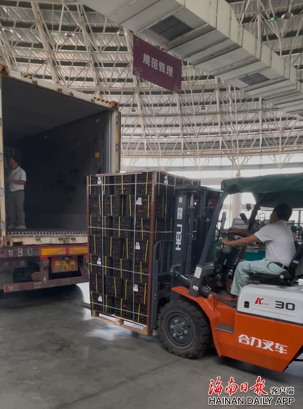 工作人员将出口甘薯装车。海南日报全媒体记者刘阳秀 摄