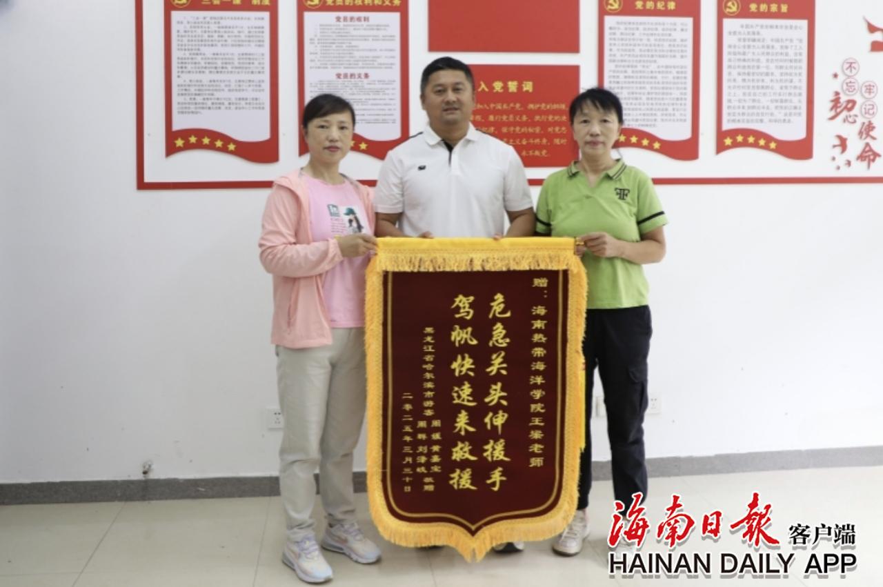 4月18日,一面写有“驾帆快速来救援 危急关头伸援手”的锦旗被送到海南热带海洋学院,表达对体育与健康学院教师王梁英勇救人行为的感激之情。