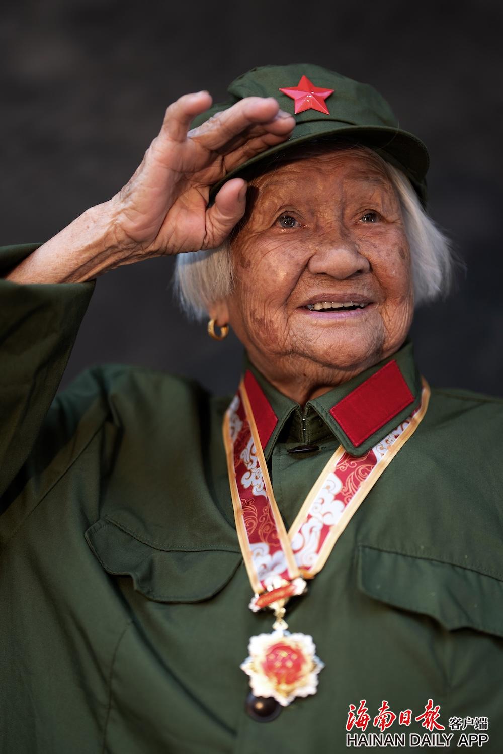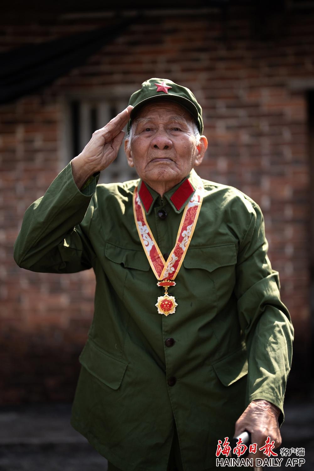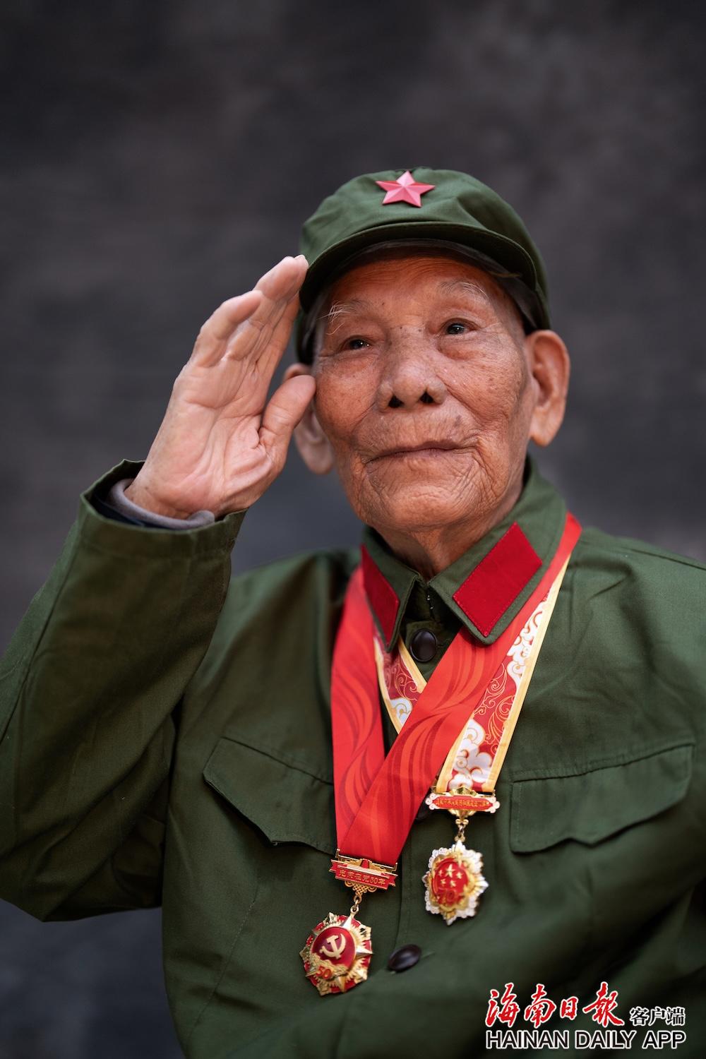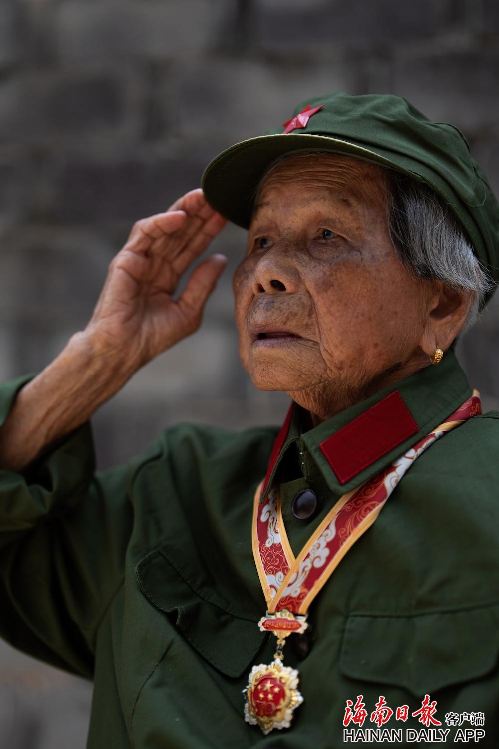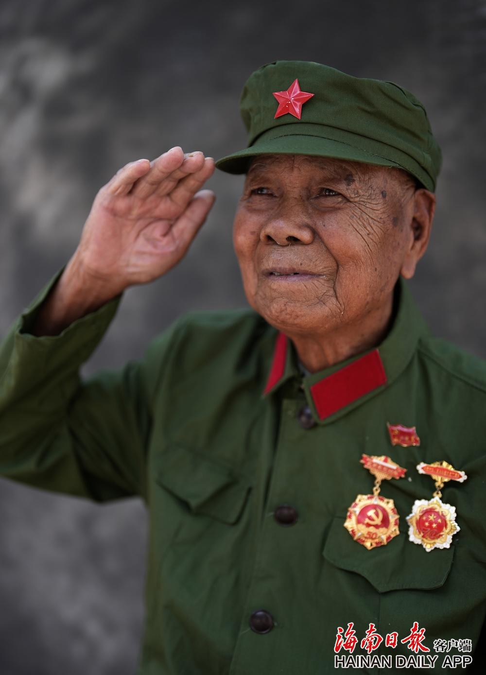 眼前的老兵们,穿上军装,忆起往事,颤颤巍巍起身,目光如炬,一个个跨越75年的军礼,令人泪目。75年前,他们穿上军装敬军礼那一刻,早已将青春与生命置之度外,以身许国;如今,这些琼崖纵队老战士再次举起手敬礼,这是对那千千万万用流血牺牲换来今日美好生活的革命英雄的告慰,更是对那段激情岁月的致敬与坚守。