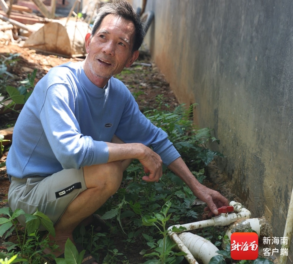 临高县和舍镇茶胡村委会茶胡村村民家里接上自来水管。记者林鸿羽 摄
