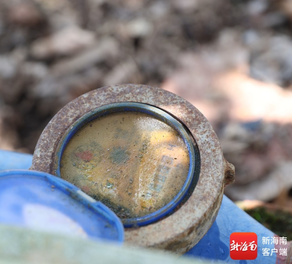 茶胡村村民家里自用的蓄水铁皮水桶。记者林鸿羽 摄