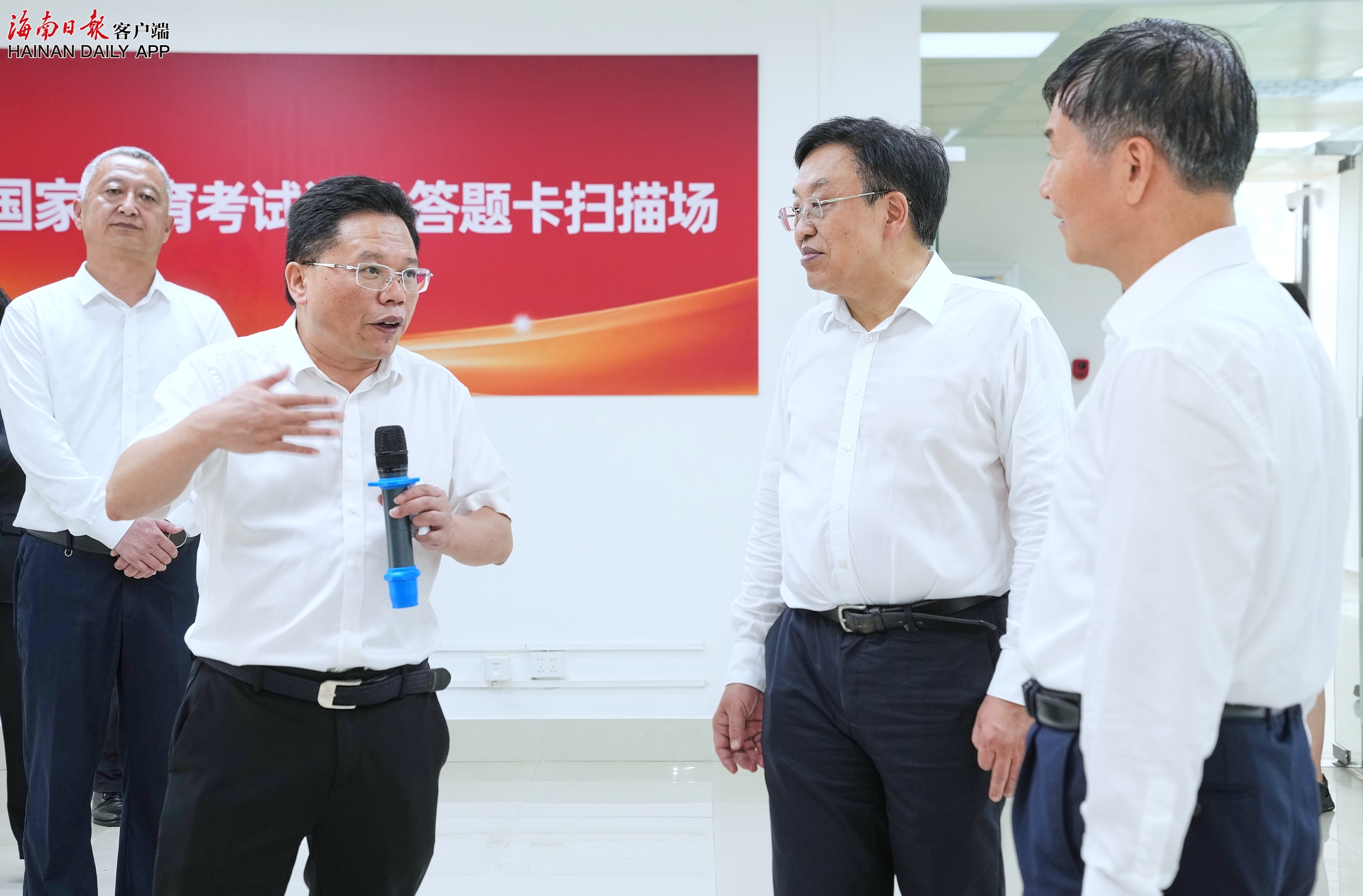 冯飞、刘小明分别来到海南中学高中部考点、海南师范大学图书馆,实地检查考前各项工作准备及评卷工作安排等情况,叮嘱大家严之又严、细之又细做好考务工作,落实防暑降温措施,密切关注天气变化,提前发布交通和天气预警信息,努力营造安全、安静、舒心的考场环境,帮助考生放松心态、从容应考。
