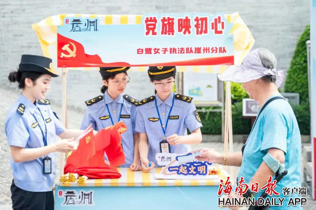 7月11日,三亚崖州区新时代文明实践集市活动在崖州古城文明门前举行。这场以“党旗映初心・文明进万家”为主题的活动,把政策咨询、便民服务和红色文化送到百姓家门口。