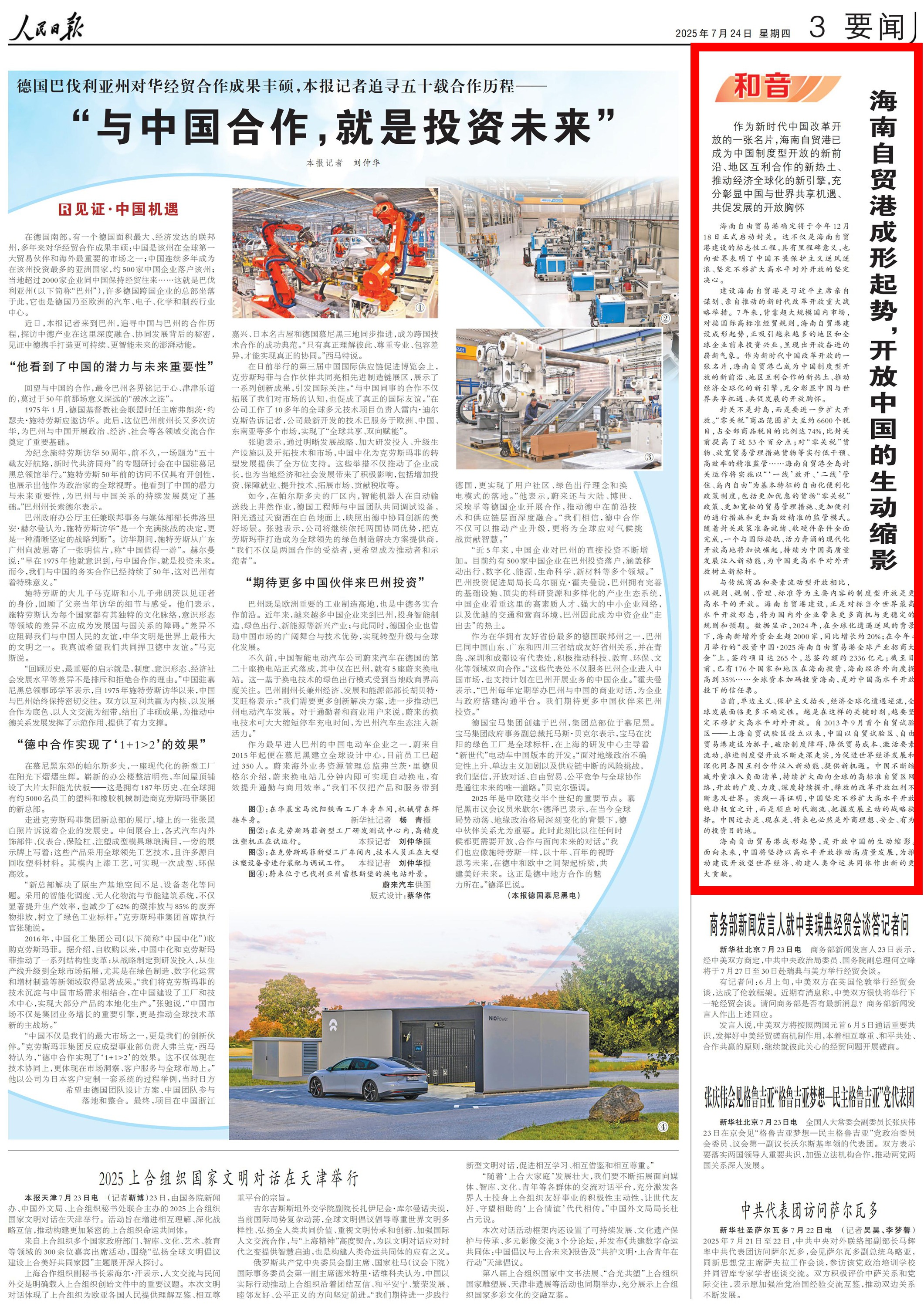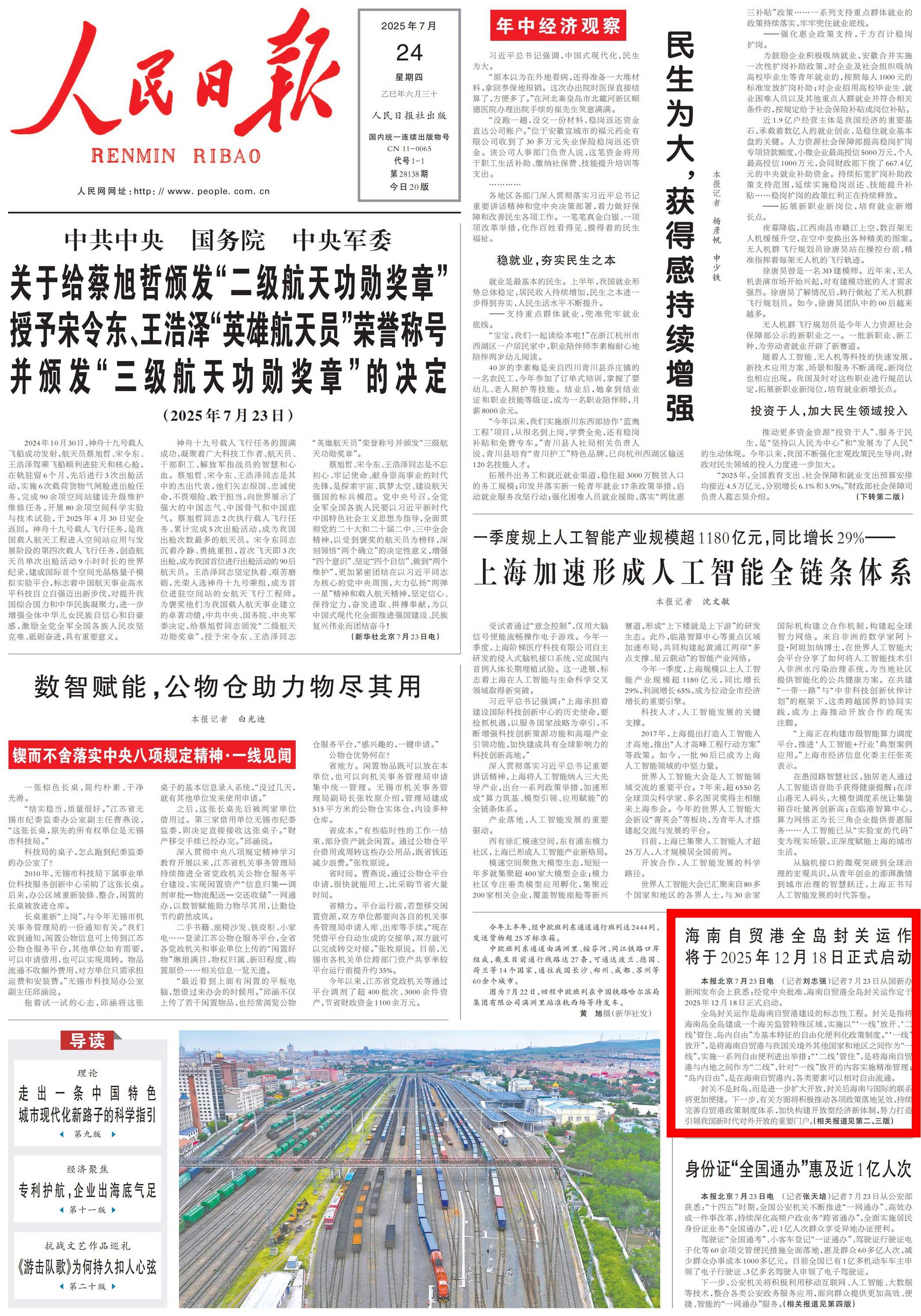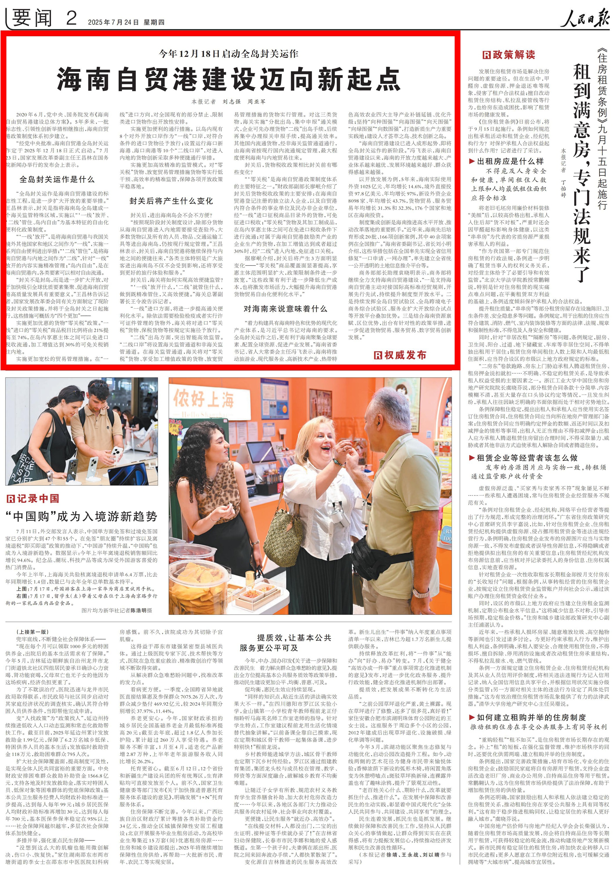 7月24日,《人民日报》分别在头版、要闻版连续刊发三篇文章,聚焦海南自贸港全岛封关运作。