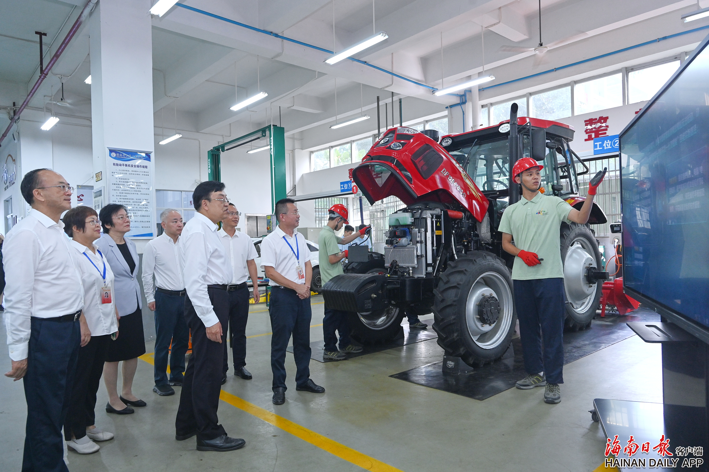 在省机电工程学校(桂林洋校区),冯飞走进汽修中心通用实训基地、汽车钣喷实训中心、丰田汽车校企合作实训基地和中德先进职业教育实训基地,观看实训项目操作演示,了解专业技能人才培养、实训基地建设、“以赛促学、以赛促训、以赛促教”助力学科专业建设以及校企协同育人、产教融合发展等情况。冯飞指出,要立足长远,体现办学特色,打造特色课程,梯队式培养技能人才队伍,同高职教育之间实现差异化发展。要深化产教融合、企校合作,紧盯企业需求和产业技术更新迭代脚步,及时更新优化教学实训内容。要用好自由贸易港开放政策,打造实训基地样板,为加快构建具有海南特色和优势的现代化产业体系提供坚实有力的专业技能人才支撑。