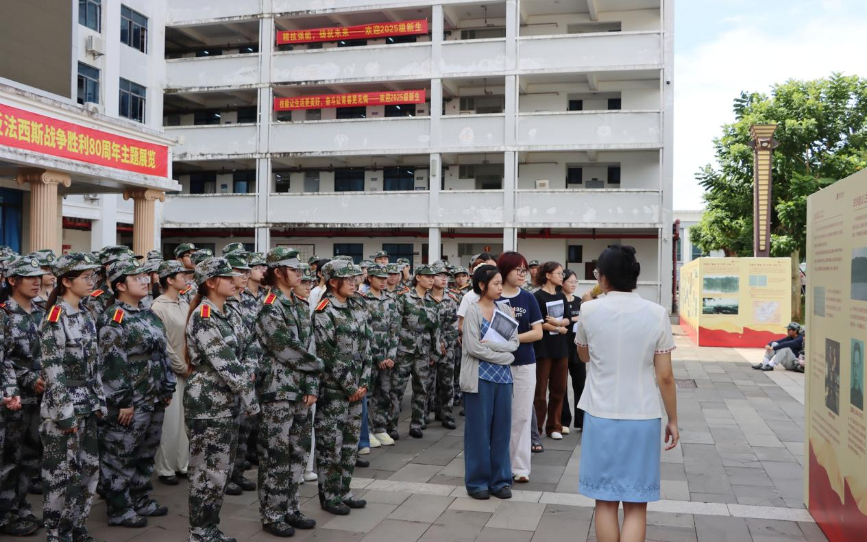 当天上午,海南外国语职业学院全体校领导、中层干部、思政课教师,以及党员代表、2025级新生共同观看展览。值得关注的是,本次主题展已被列为该校9000余名学生思政课的必修课程,确保每一位学子都能从中汲取红色力量,传承抗战精神。