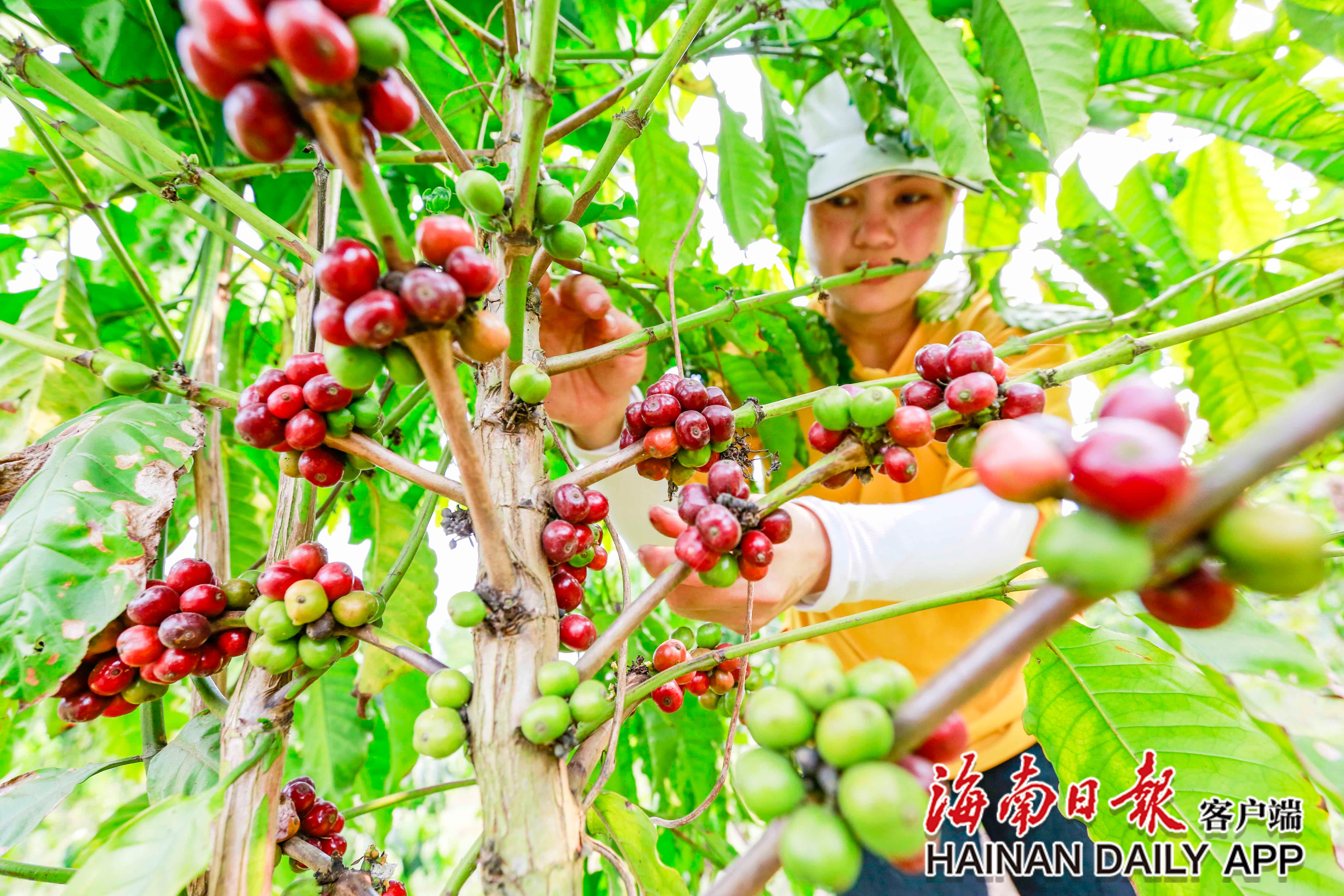 福山咖啡种植户采摘成熟的咖啡豆。海南日报全媒体记者高懿 摄