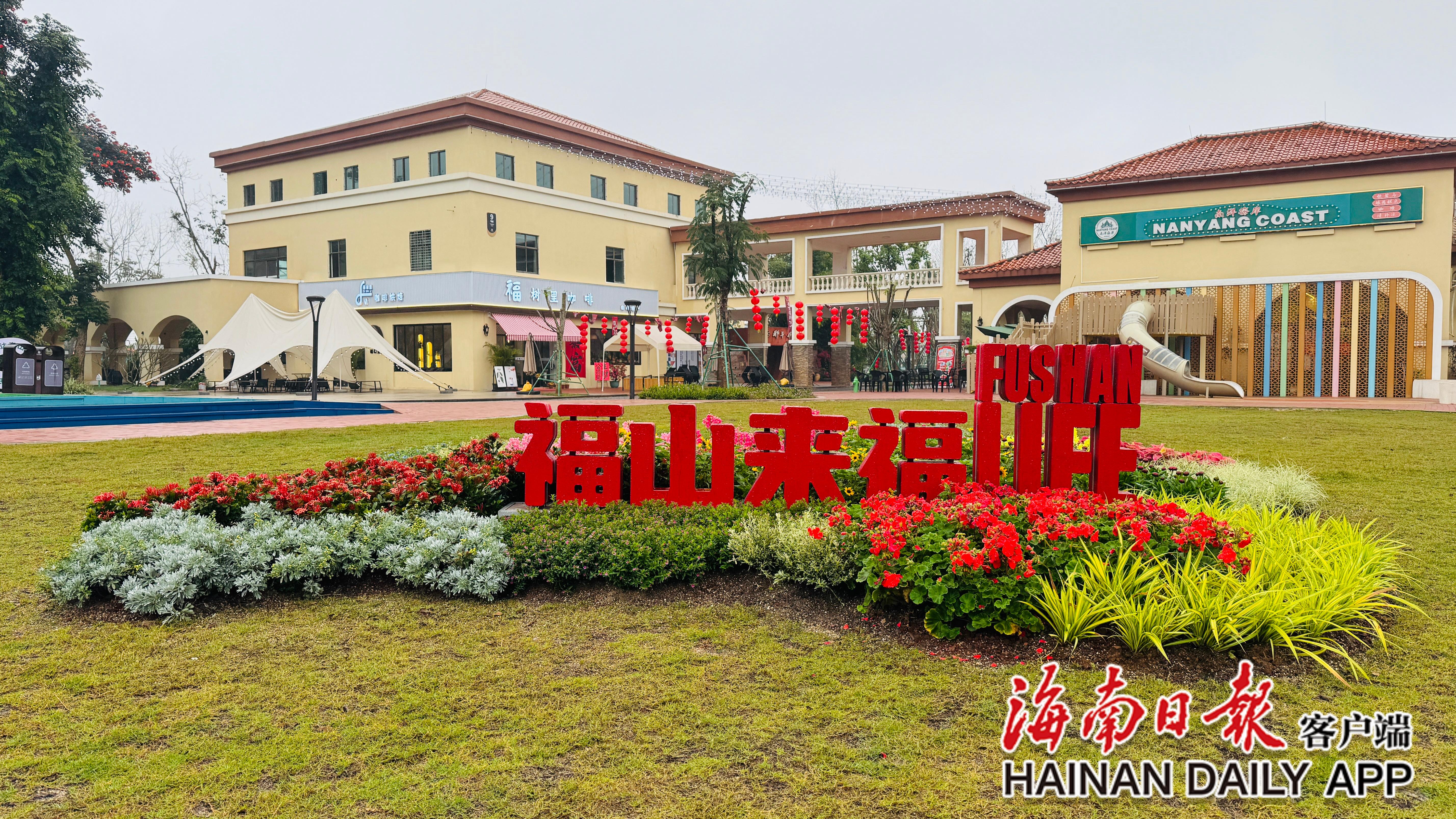 福山咖啡文化风情镇中树立的“福山来福(Life)”打卡点。海南日报全媒体记者高懿 摄