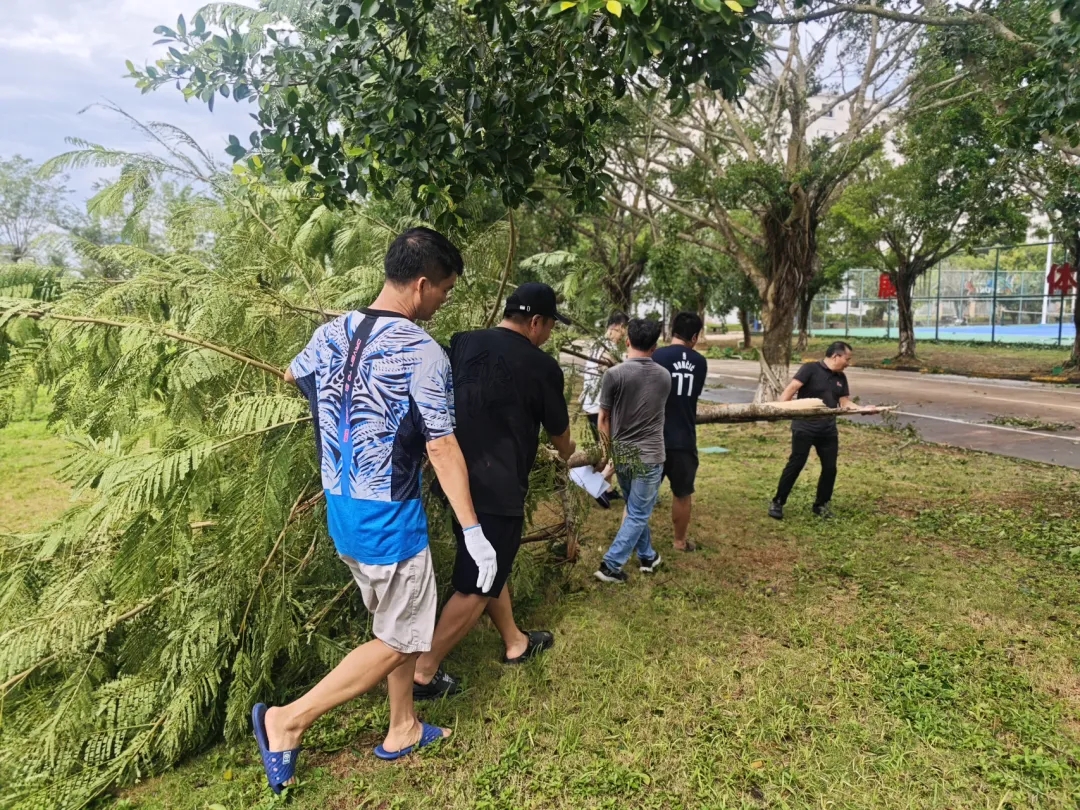 台风过后,海南大学师生们立即投入到校园恢复工作中。辅导员们带领同学们,对倒伏的树木、损坏的设施进行清理与修整。
