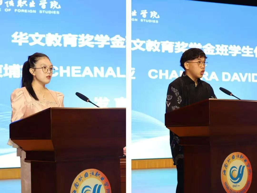来自印度尼西亚的黄志雄与来自柬埔寨的谢佩娥作为首届华文教育奖学金班学生代表发言。他们分享了初到海南的亲切感受与学习体会,表达了对海南省各级侨务部门及学校的由衷感谢,并表示将努力学好中文,深入了解中华文化和海南自贸港建设,未来成为中外文化交流的友好使者,为促进中外友好往来和相互理解贡献力量。