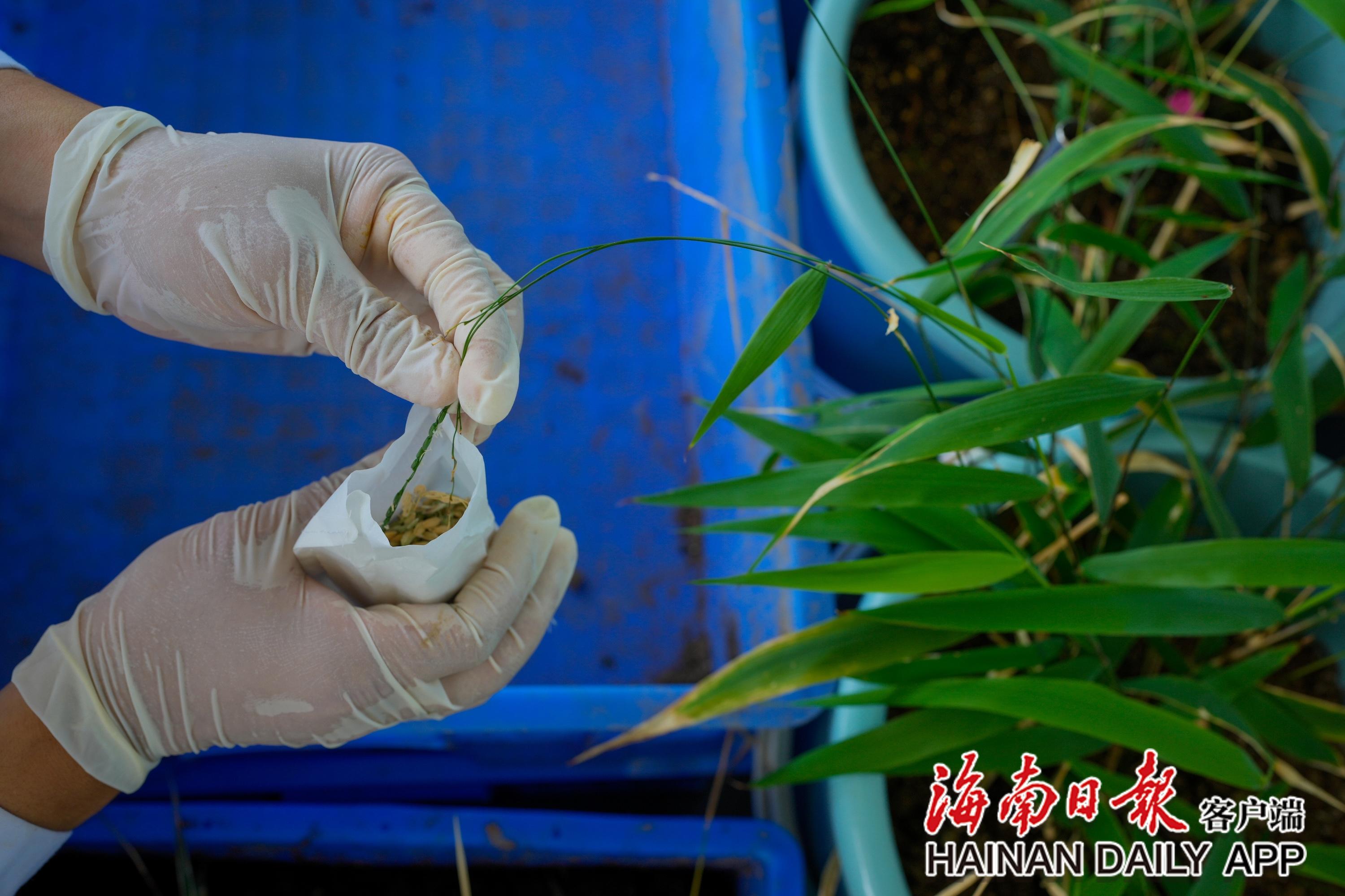 2025年3月30日,在中国农科院国家南繁研究院,水稻专家将抗虫野生稻与栽培稻材料进行杂交。这些杂交种将用于后续对野生稻优良抗虫基因的克隆。