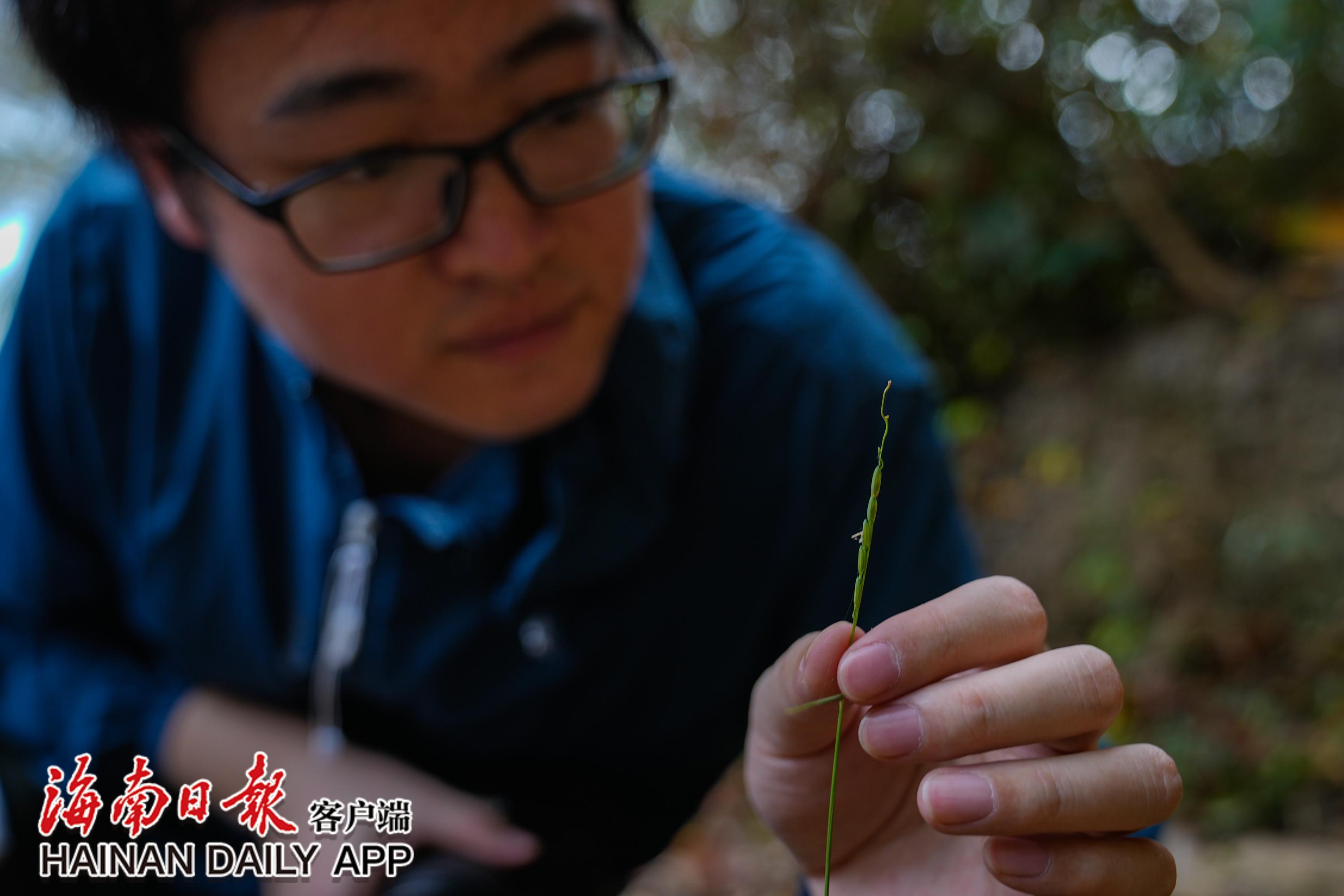 2024年1月30日,一株疣粒野生稻在三亚山区被发现后,张谢勇博士仔细观察其表型性状。