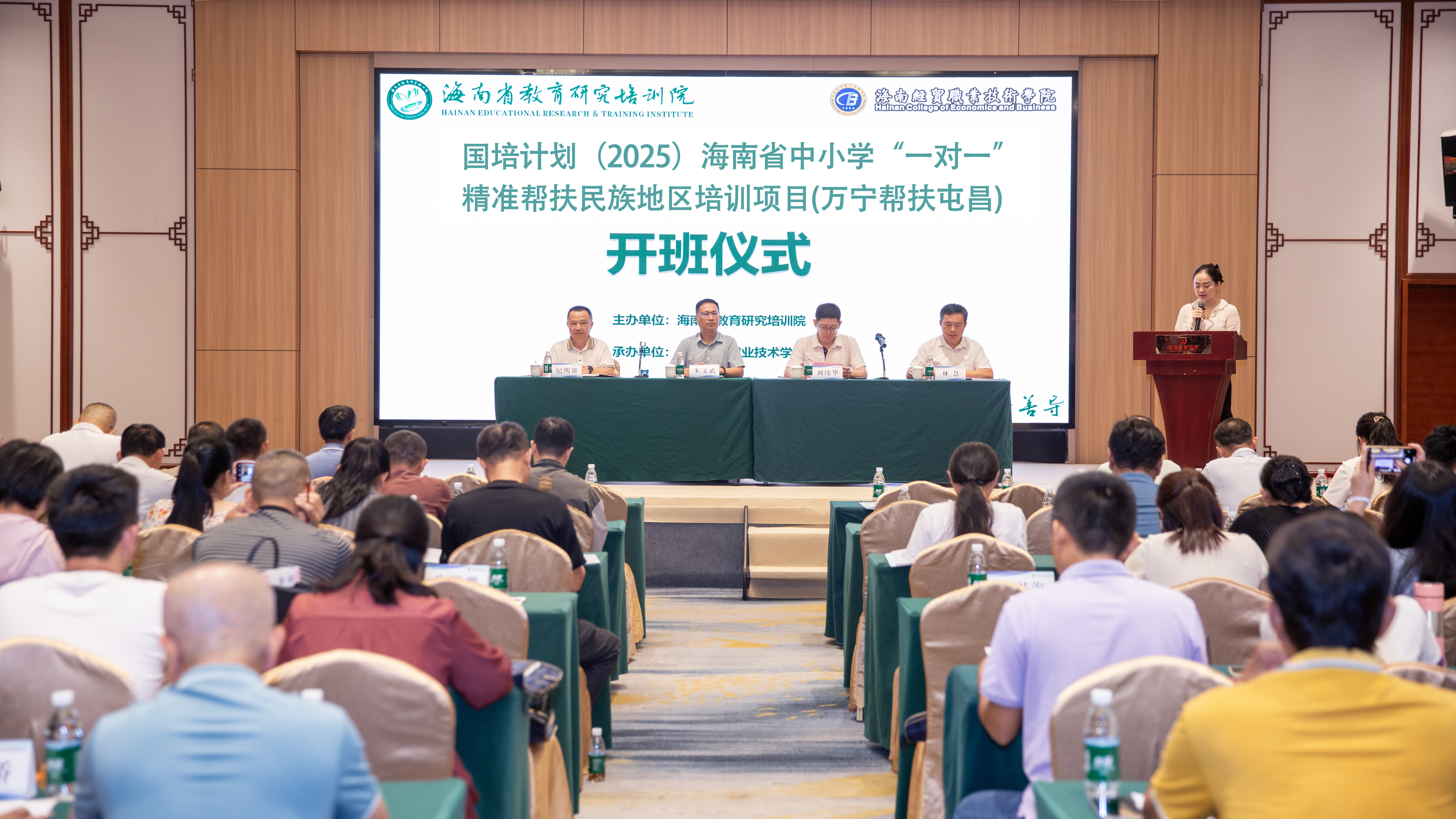 10月14日下午,由海南省教育研究培训院主办、海南经贸职业技术学院承办的“国培计划(2025)”——海南省中小学“一对一”精准帮扶民族地区培训项目(万宁帮扶屯昌)开班仪式在海口举行。来自海南省教育研究培训院、万宁市教育研究培训中心、屯昌县教育研究培训中心的负责人和万宁市全学科帮扶团队共计30人,以及屯昌县100名参训学员共同参与。