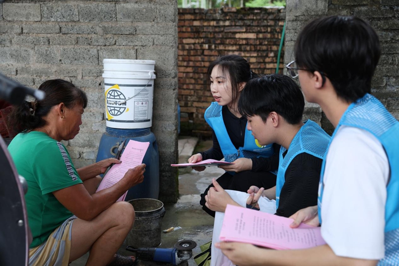这是日前海南师范大学经济与管理学院乡村振兴促进团开展科普活动的一幕。学生们立足专业,组成了“普惠金融宣讲组”,聚焦农产品种植的扩产融资、台风及病虫害保障的农业保险覆盖率等内容开展调研。