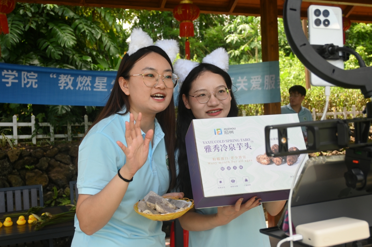 赋能数字生活——在海口琼山区旧州镇雅秀村,志愿者们把“直播间”搬进了田间地头。他们深挖当地芋头的品质优势与特色卖点,搭建临时直播场景,手把手教村民操作直播设备、设计出镜话术、掌握口播技巧。这场“家门口的培训”,不仅让村民学会了数字工具,更助力当地特色农产品拓宽销售渠道。