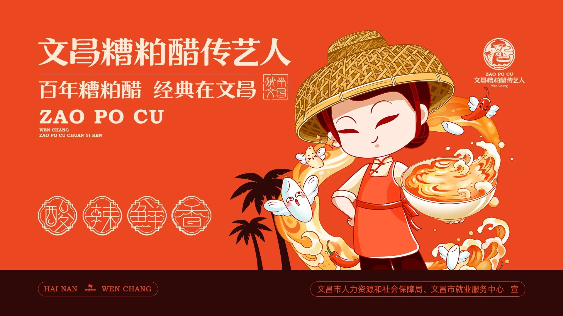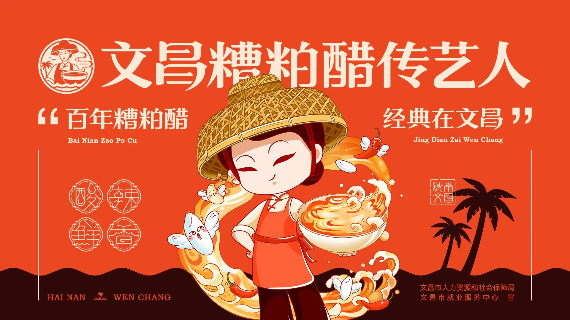 文昌市糟粕醋协会日前成立,在成立大会上,“文昌糟粕醋传艺人”劳务品牌正式亮相,这一品牌形象不仅代表了文昌糟粕醋的传统风味与精湛技艺,更承载着文昌人民的生活智慧、渔民文化、侨乡情怀等丰富的文化内涵,成为文昌美食文化的一张亮丽名片。