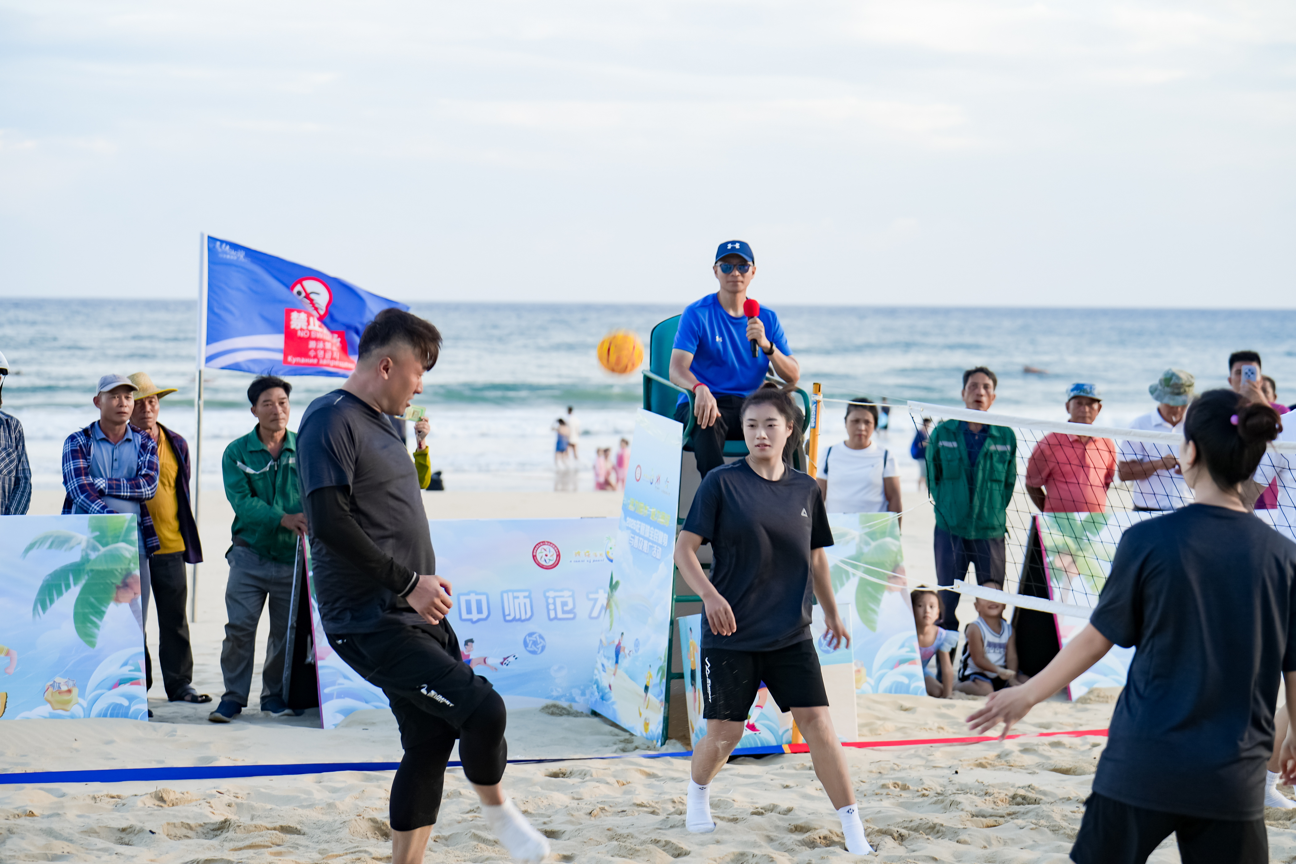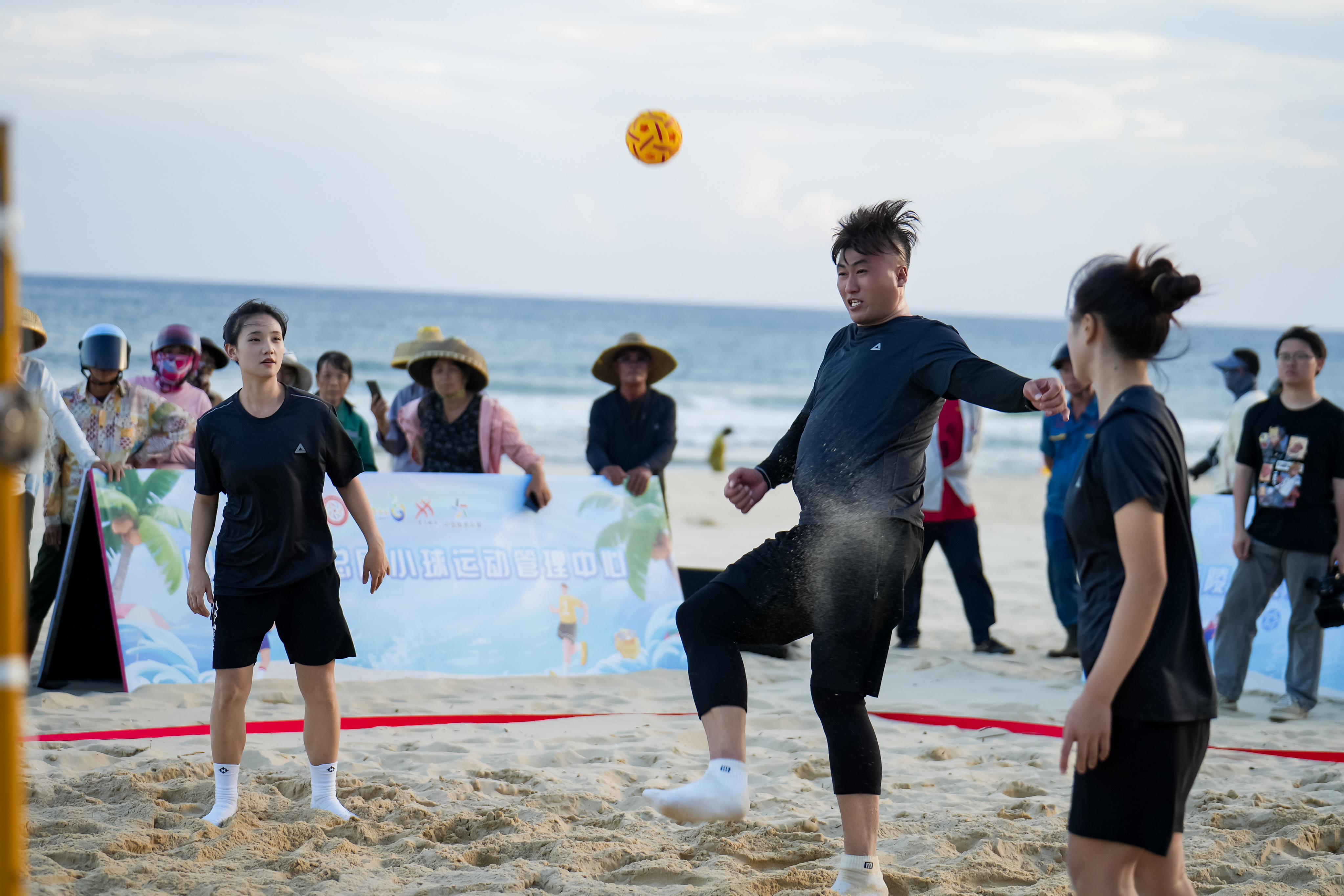 细软沙滩与蔚蓝海岸相映成趣,一场融合竞技激情与运动美感的藤球盛宴在此上演,为现场游客和市民带来独特的体育文化体验。