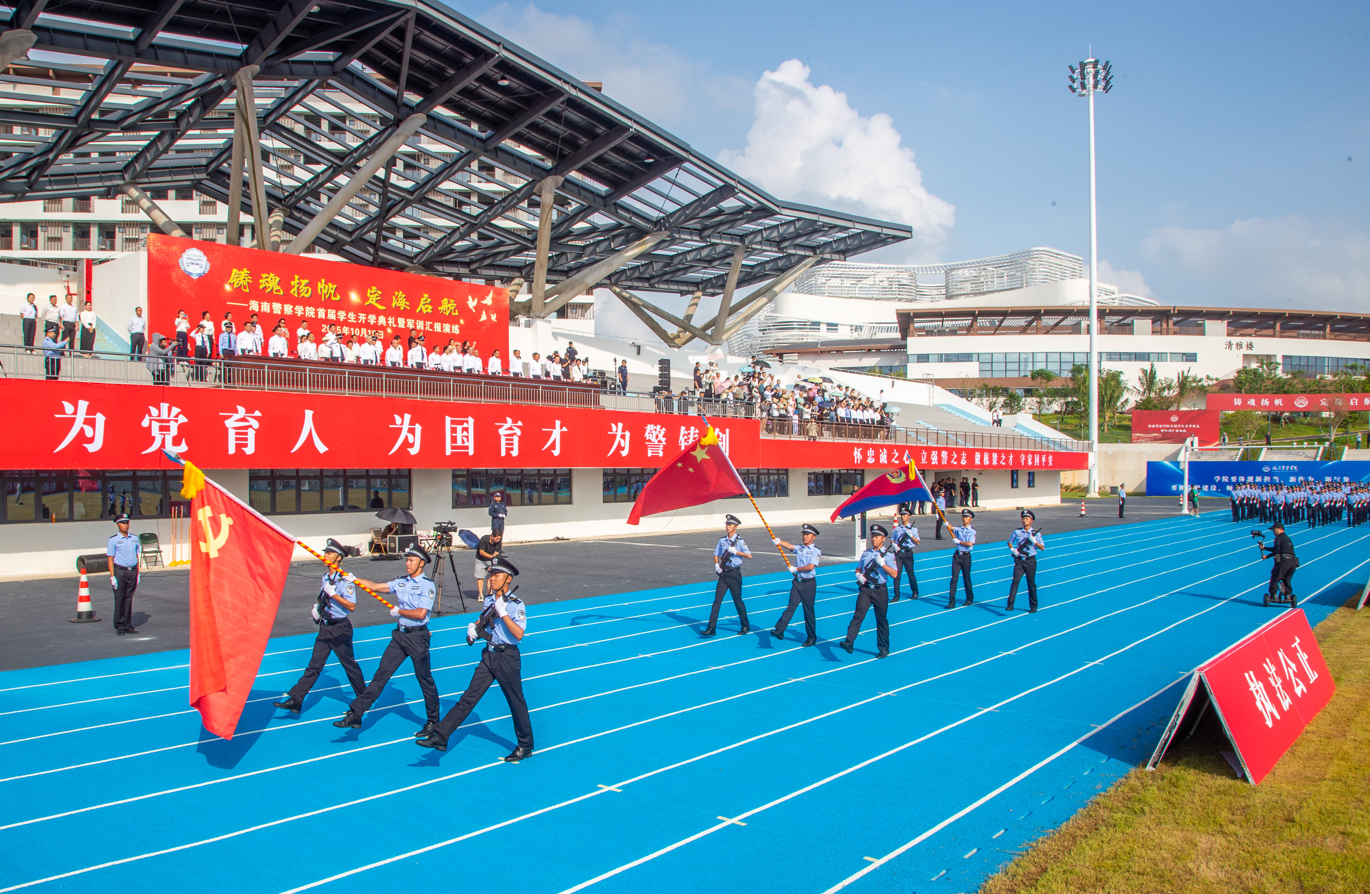 10月19日,海南警察学院举行首届学生开学典礼暨军训汇报演练,300名学生参加。