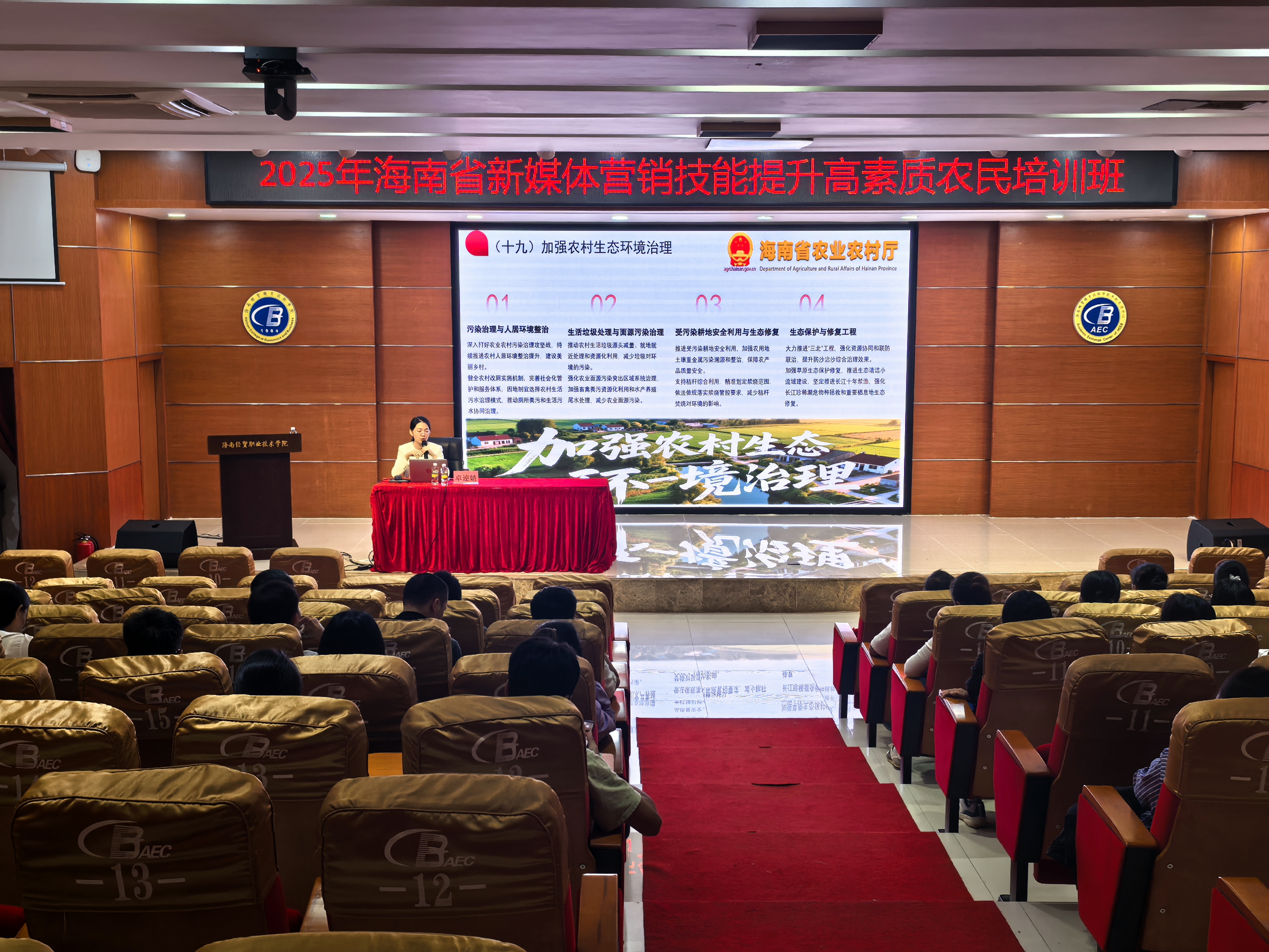 本次培训班由海南省农业农村厅主办,海南省农业学校承办、海南经贸职业技术学院协办,来自全省各市县的新型农业经营主体负责人、种植养殖大户、农村电商从业者等五十位学员齐聚一堂,开启为期6天的技能提升之旅。