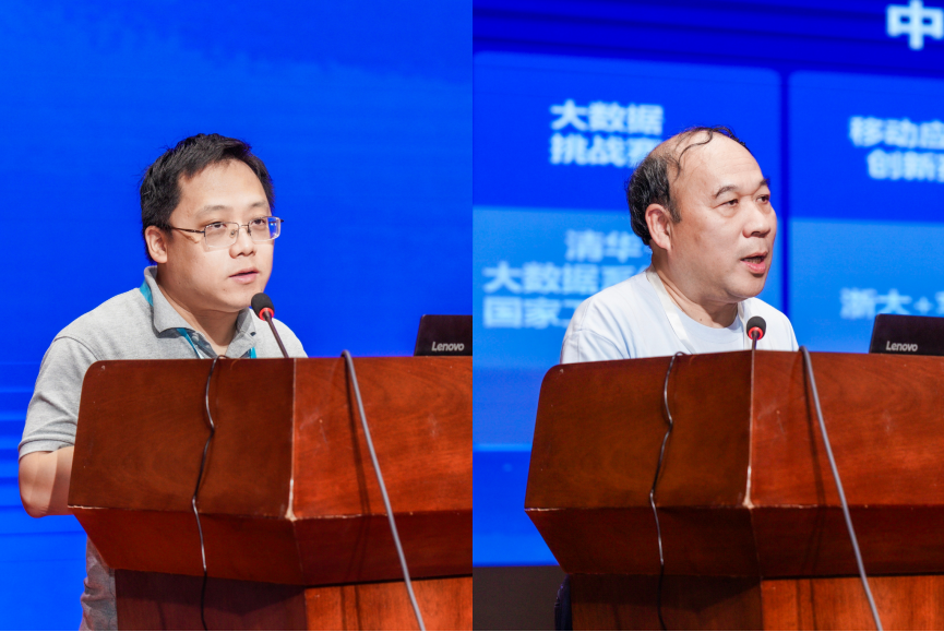 百度高校合作部总监李轩涯(左),浙江大学求是特聘教授、C4-AI竞赛组织委员会主任何钦铭(右)在颁奖典礼上致辞