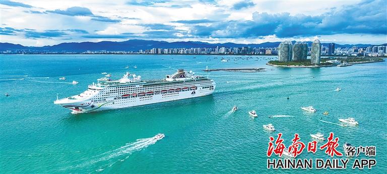 近年来,三亚邮轮游艇产业蓬勃兴起。图为丽星邮轮“领航星”号驶离三亚,搭载游客奔赴下一个目的地。海南日报全媒体记者 王程龙 摄