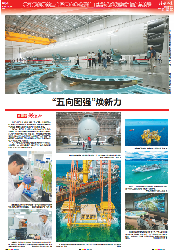 今天,海南日报继续推出“自贸港影像志”特别报道,从地面到太空,从陆地到海洋,海南正以产业升级的澎湃动能,书写未来发展的崭新篇章。