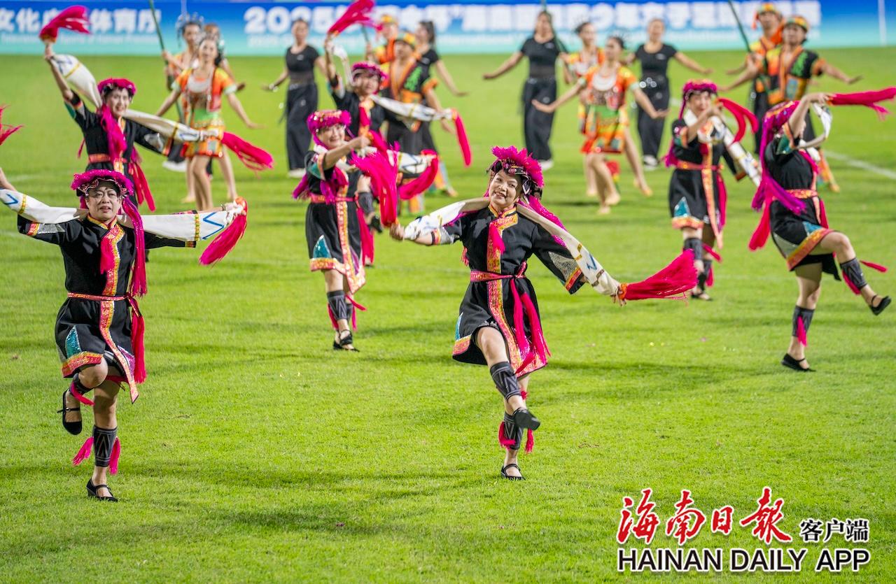 11月26日,2025年“琼中杯”海南国际青少年女子足球邀请赛在琼中黎族苗族自治县开幕。图为开幕式上的苗族舞蹈表演。海南日报全媒体记者 李天平 摄