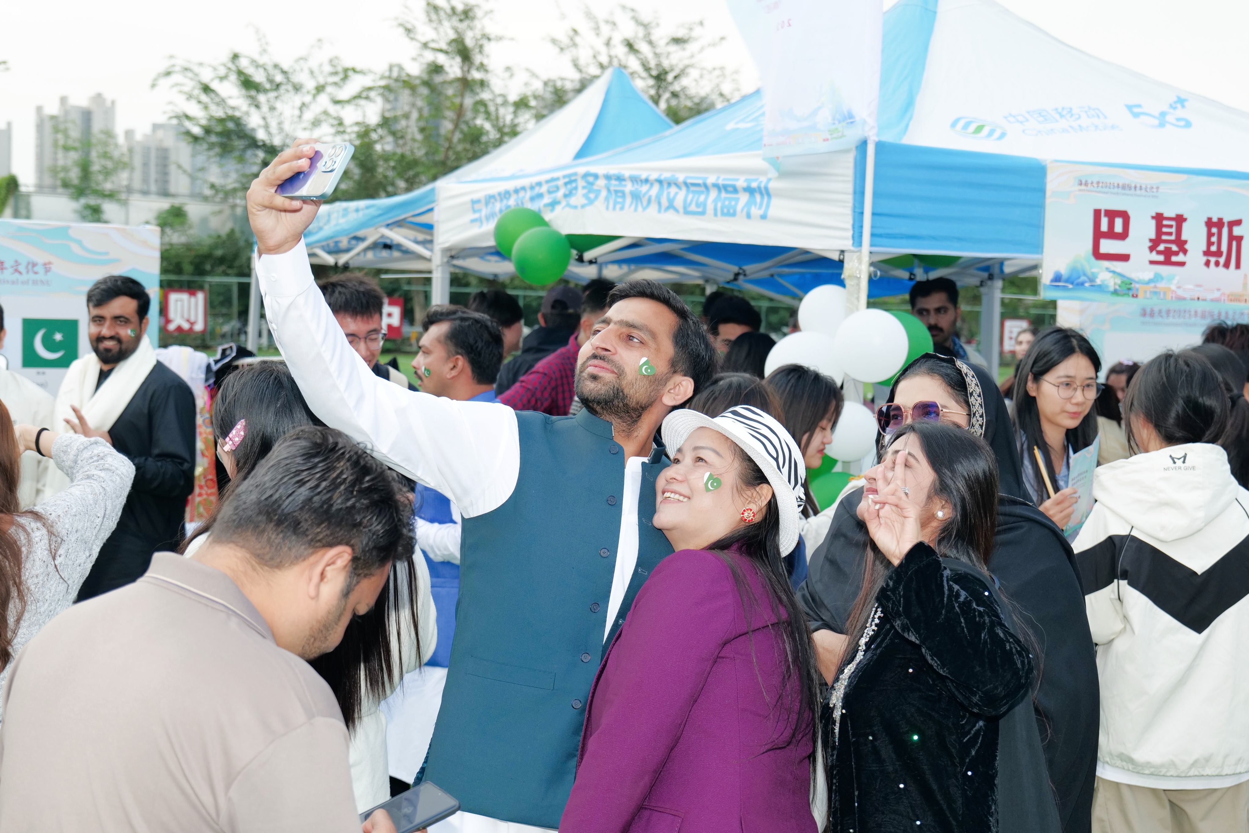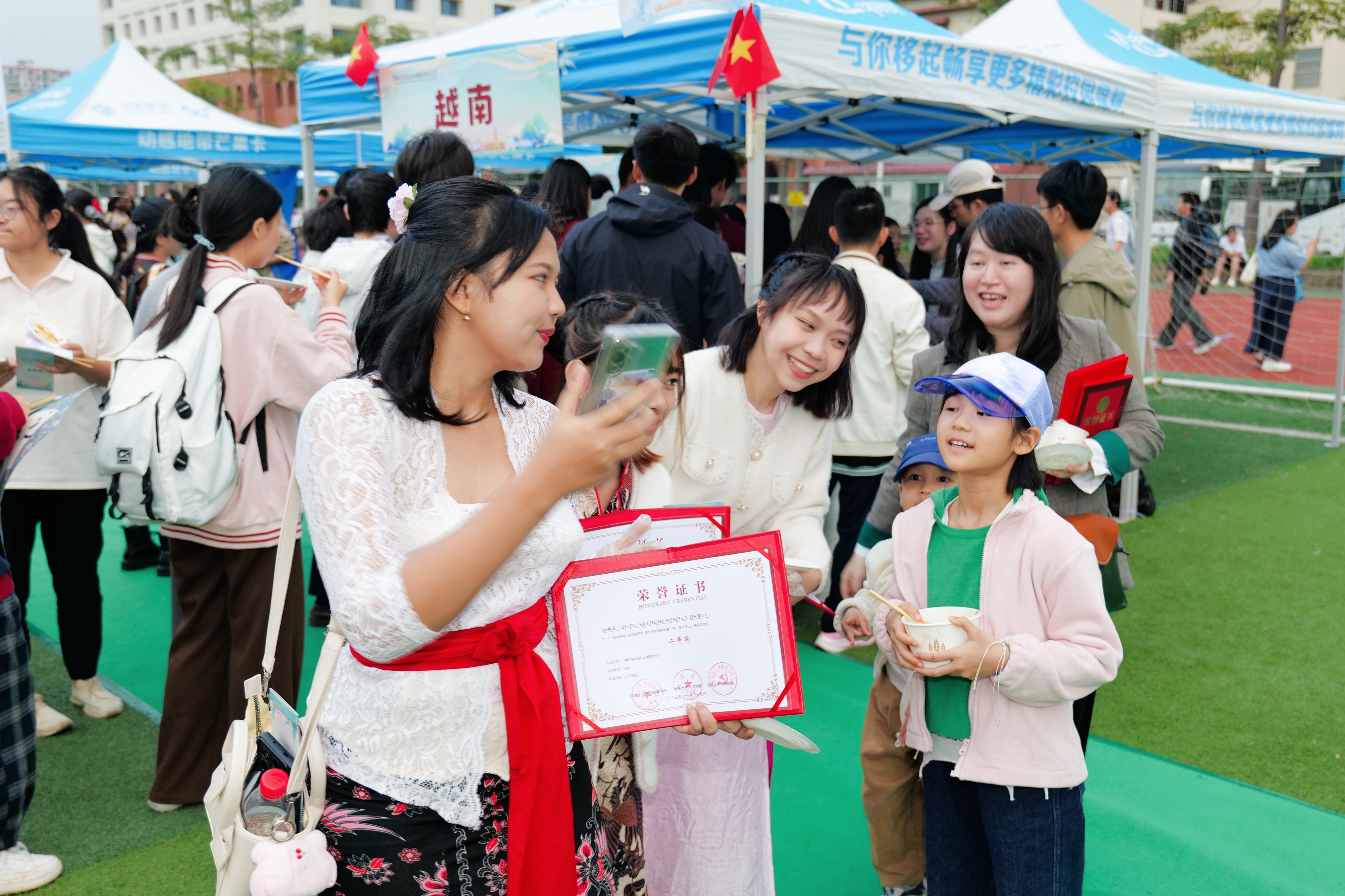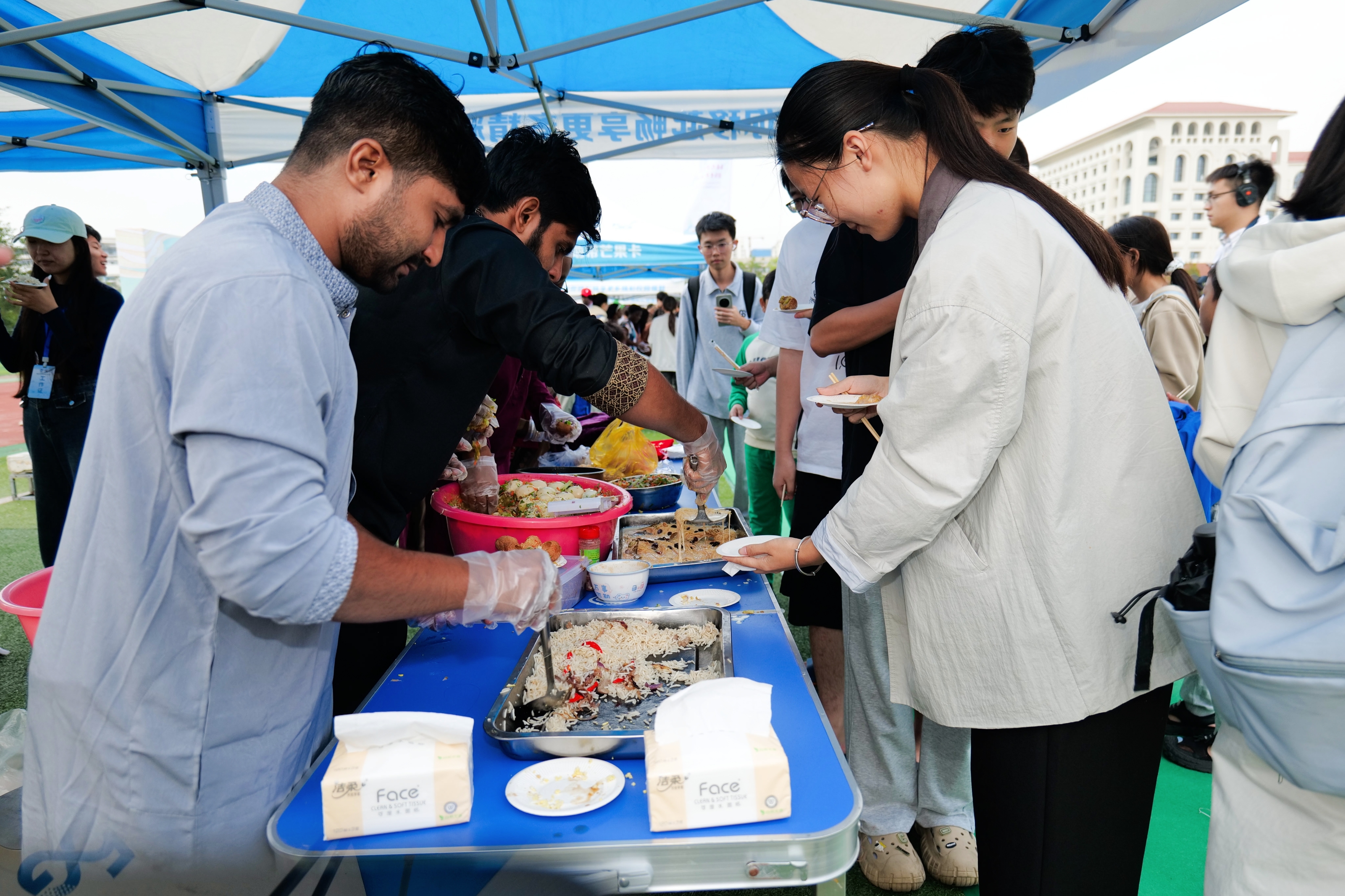 当日下午,整个校园化身为充满活力的“国际会客厅”。海南日报全媒体记者看到,在文化与美食展区,糟粕醋火锅、海南粉、海南特色糕点等地道“琼味”吸引众多师生驻足品尝。各国学生也纷纷将家乡风味“搬”到了现场,巴基斯坦的比尔亚尼炒饭、英国的茶点等吸引参与者排起长队。师生们在“请你吃”的热情邀约中,品味世界风味,交流文化故事。