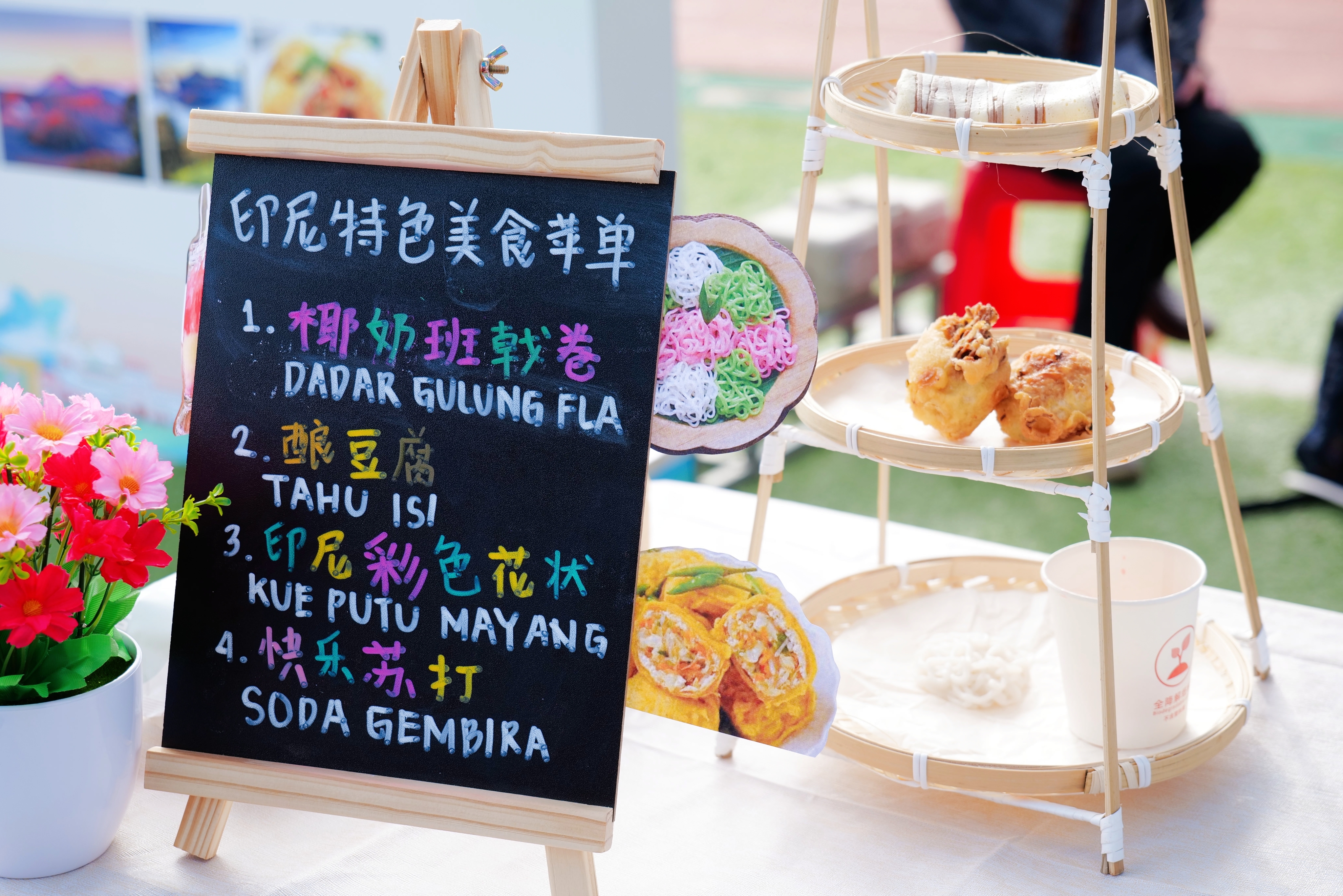 在文化与美食展区,师生们在品味各国美味。学校供图