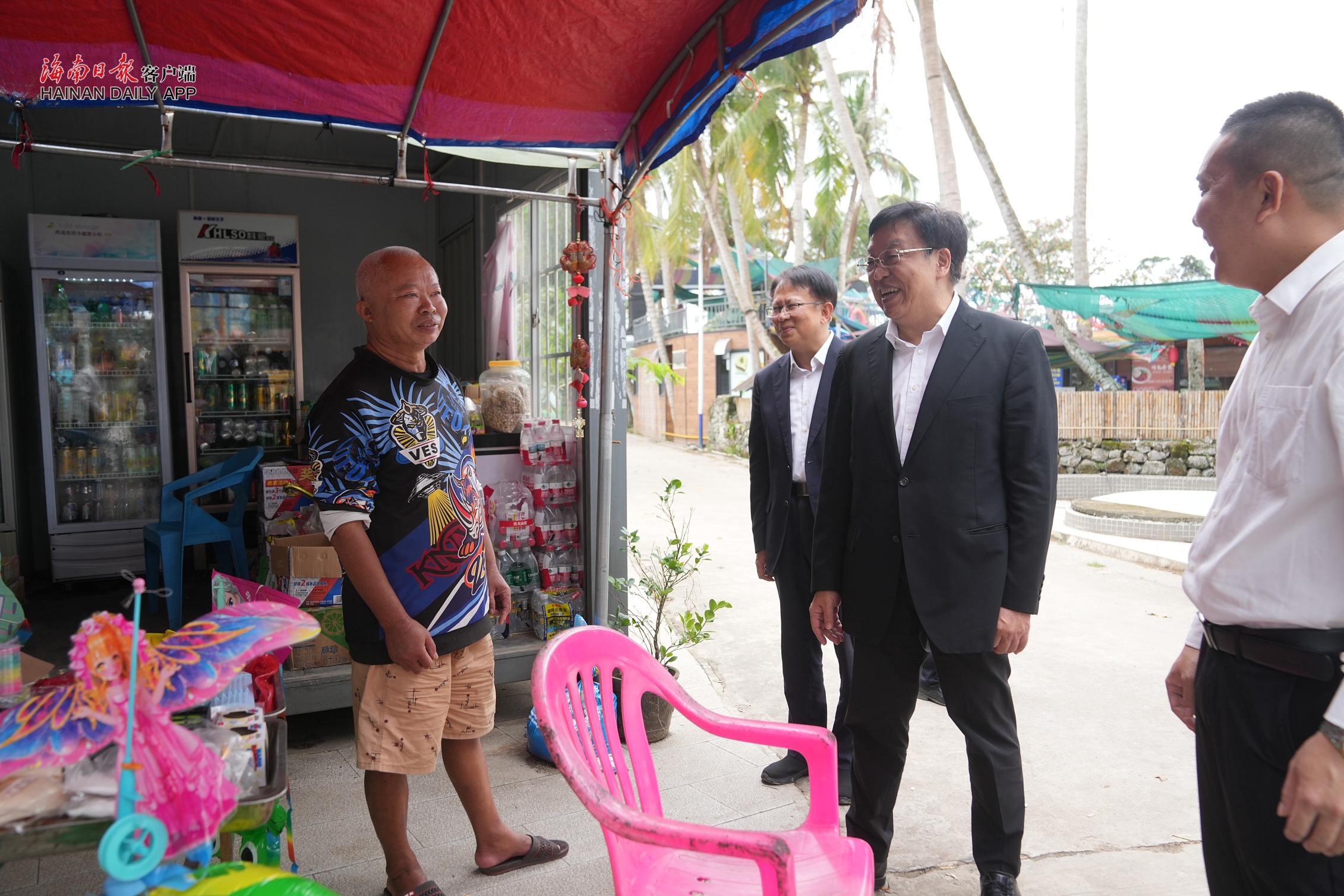 码头村位于清澜大桥东郊镇侧桥头,连接环岛旅游公路,以建设“和美乡村”为目标,推动渔业、旅游业融合发展。冯飞走进村中察看村容村貌,并同村民交流,鼓励他们抓住发展特色旅游的大好机遇,把日子过得越来越红火。