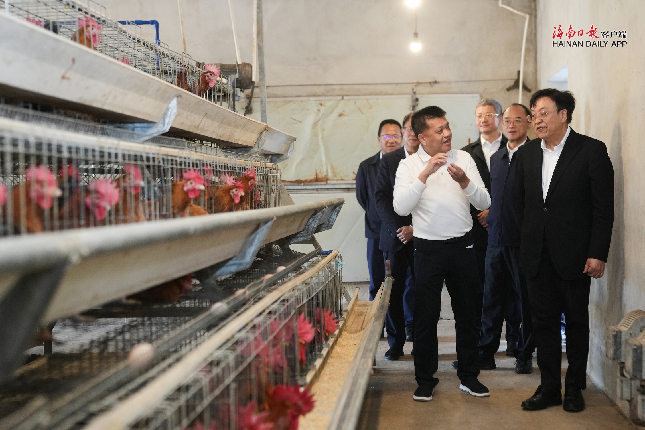 冯飞来到海南新泉文昌鸡有限公司昌洒育种场,了解企业生产经营和文昌鸡产业发展等情况,强调要推动养殖业现代化转型,升级改造种养设施,发挥政策性农业保险引导作用,提高防灾减灾救灾能力,最大限度减少自然灾害对农业生产的影响;要大力发展文昌鸡特色产业,发展壮大良种繁育,强化科技赋能,持续推进标准化养殖,擦亮农业特色品牌。