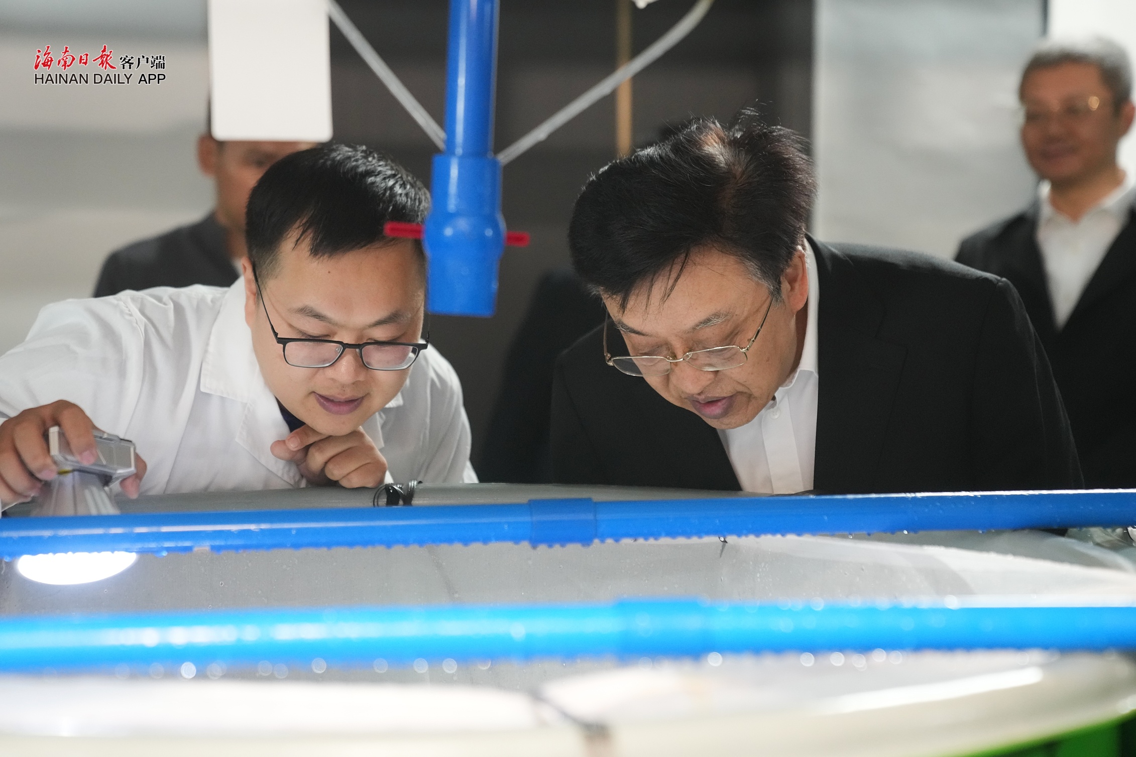 在海南康冠生物科技有限公司翁田基地,冯飞调研企业东风螺养殖生产经营和文昌市水产养殖产业发展规划,指出要提升水产养殖产业化、组织化、规模化水平,加快选育突破性新品种,推动产业补链延链、优化升级;加快推进标准化养殖,提升科技支撑能力,打造特色渔业市场交易体系,推动产业往深加工走、往高附加值走;统筹发展和保护,提升水资源节约集约利用水平,完善联农带农机制,实现生态效益、社会效益、经济效益有机统一。
