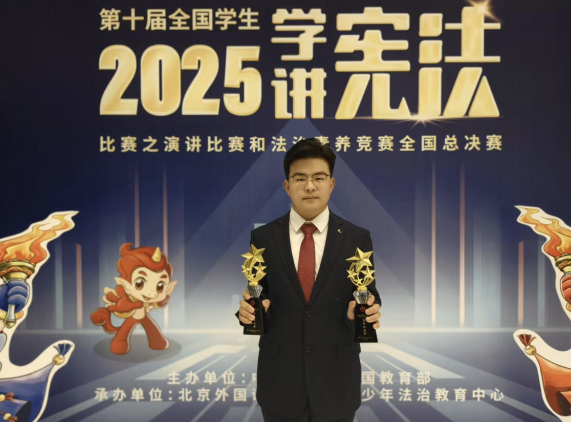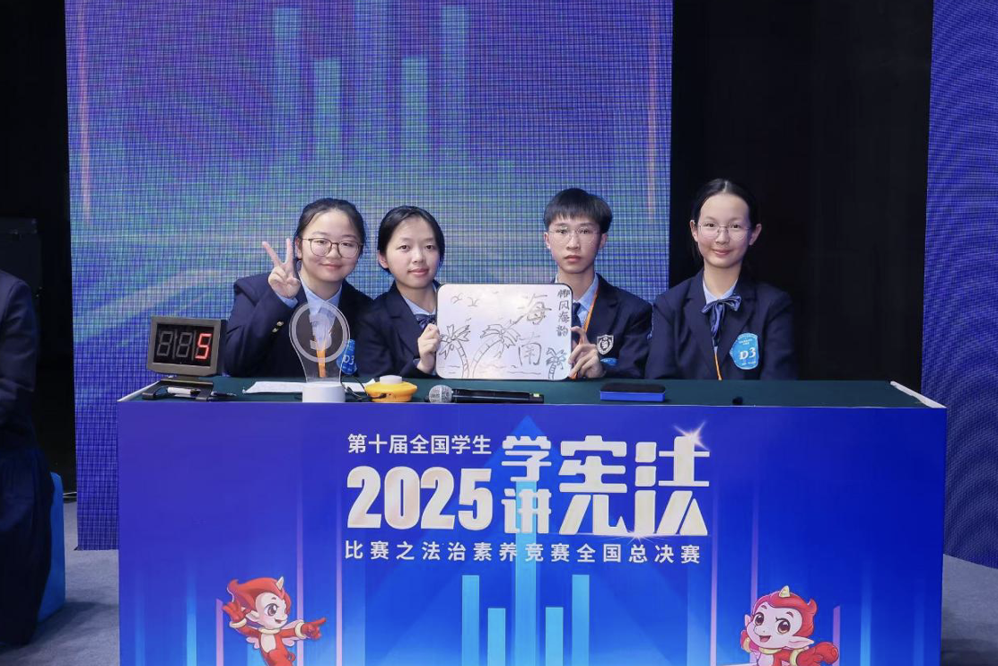 11月29日至12月3日,由教育部主办的第十届全国学生“学宪法 讲宪法”活动全国总决赛在北京举行。海南代表队8名参赛同学以精彩表现斩获佳绩,包含1项冠军、5个一等奖、1个二等奖、1个三等奖以及最佳表达奖,一等奖获奖数量排全国首位。