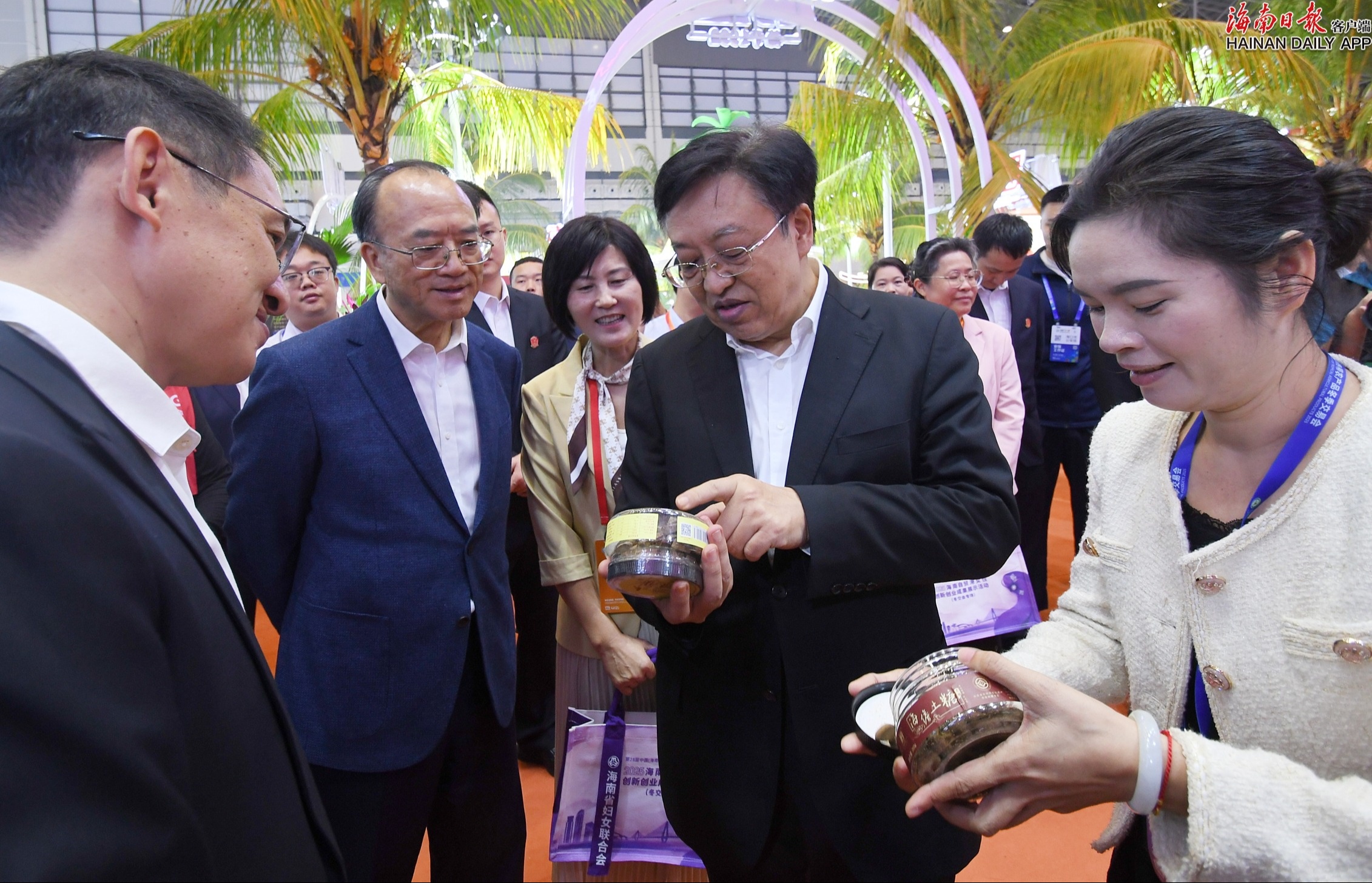 12月6日,省委书记冯飞到第28届中国(海南)国际热带农产品冬季交易会现场巡馆,了解展览和交易情况。