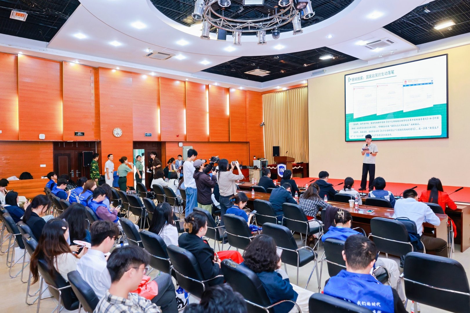 宣讲实践团分赴全省多地开展实地研学。师生们深入港口码头、产业园区等地,亲身体验自贸港建设的生动实践。走访结束后,师生们带着见闻与思考返回海南大学,进行集中宣讲与汇报成果展示。青年学子们以鲜活案例和真切感悟,讲述了他们眼中的海南故事,传递出自贸港的蓬勃机遇与青春活力。
