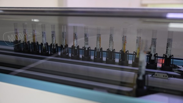 记者在现场看到,当护士完成采血后,标本被直接放入专用传输通道,通过密闭管道,只要1分钟左右就能自动送达实验室。对于住院患者的标本,护士采样后,标本通过医院气动物流系统,3~5分钟就能快速直达实验室,为危重患者的抢救赢得宝贵时间。在这里患者无需东奔西跑、来回折返,大大缩短了患者的就医时长,不仅提升了患者的就医体验感,而且确保了结果的准确性。同时,通过引进的全实验室自动化流水线,1管血(通常3—5毫升) 即可完成数十个项目的检测,减少患者的采血量的同时,也大大提高了检测效率。此外,检测完成后,系统会自动将原始标本存入后处理。如需复查,只需在电脑上操作,系统就能自动调取原管重新检测。