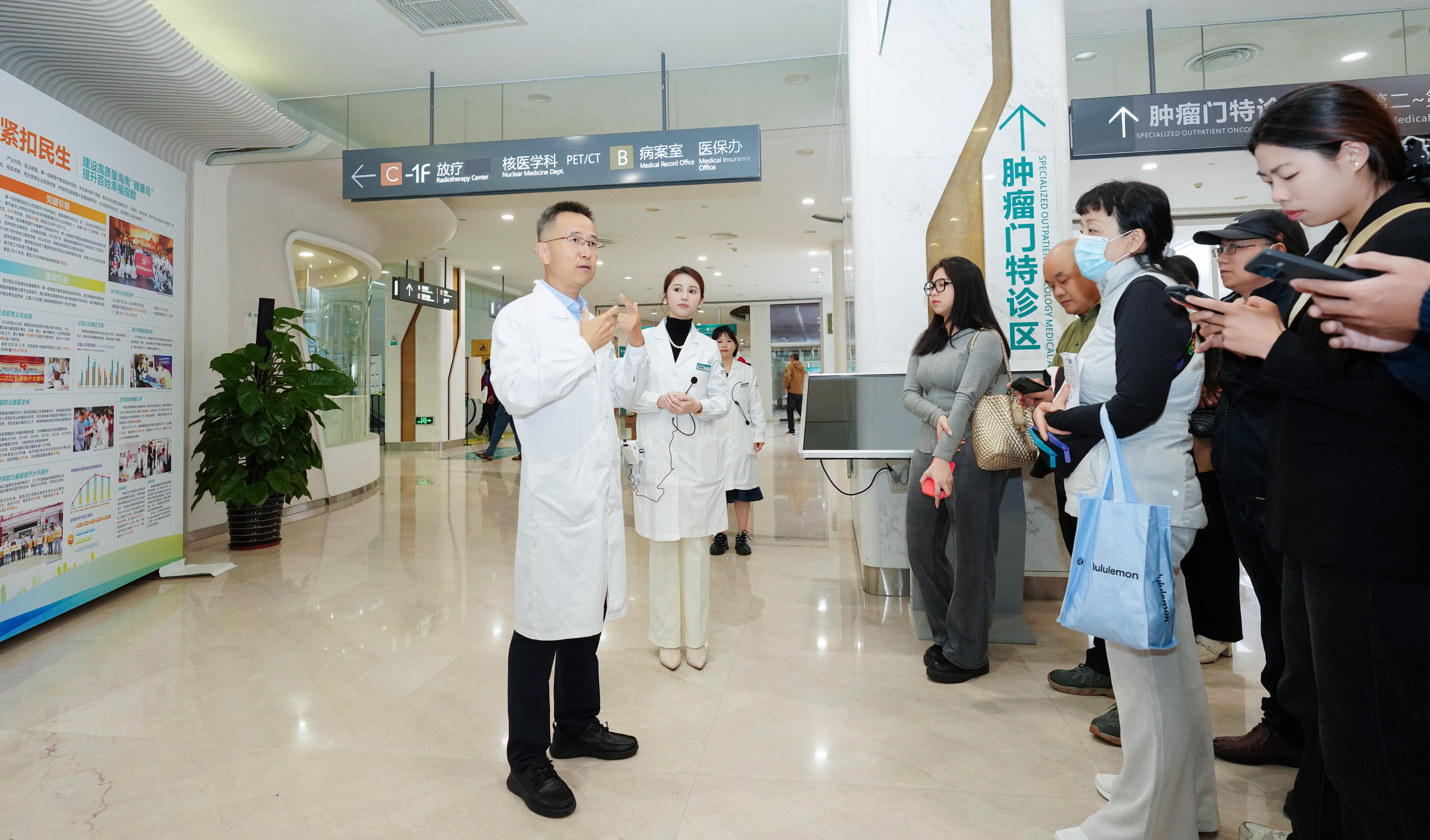 媒体记者一行先后来到医院一站式服务中心、肿瘤门特诊区、手术患者家属休息区、病理科、检验科、核医学科、放疗科、成美医院体检中心等功能区和核心区域参观,详细了解医院的先进医疗设备和医疗技术,现场感受医院的人文关怀和温馨服务。