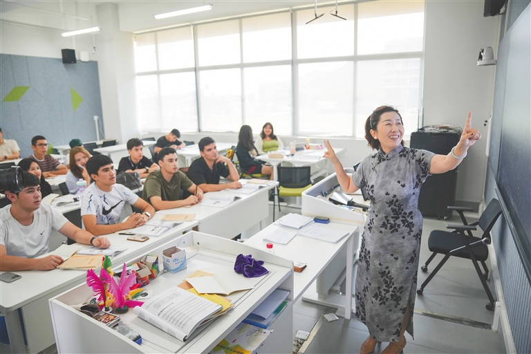 在海南陵水黎安国际教育创新试验区,北京语言大学海南国际学院的留学生正在上中文课。海南日报全媒体记者 王程龙 摄