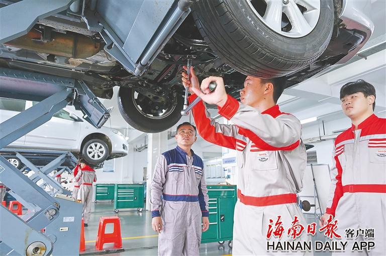 海南省机电工程学校内,汽车运用与维修专业的学生们在教学车间内进行汽车多种类维修实操学习。近年来,该校深入推进产教融合、校企合作,通过订单式培养、定向输送等模式,实现了人才培养与产业需求的精准对接。海南日报全媒体记者 封烁 摄