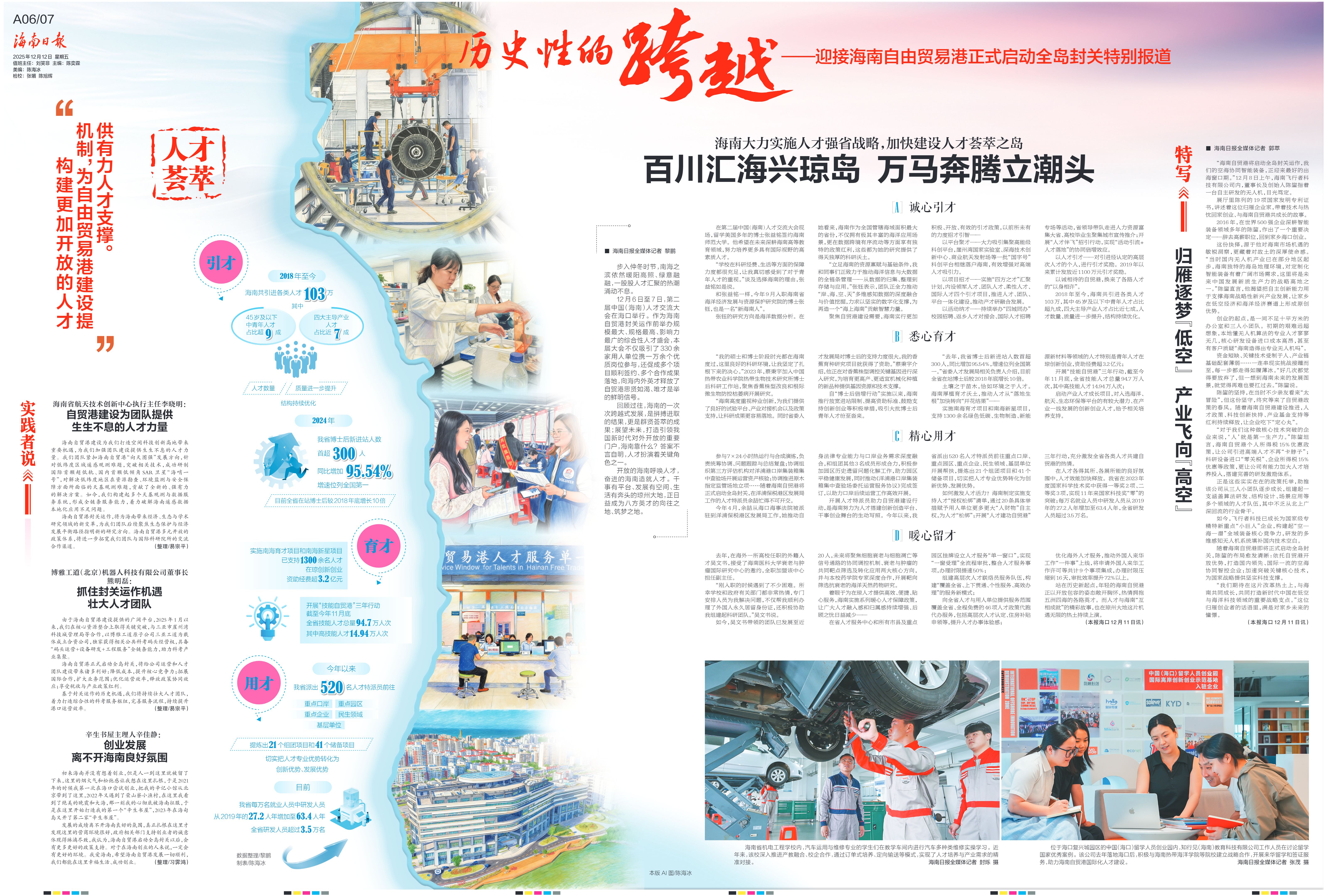 回顾过往,海南的一次次跨越式发展,是拼搏进取的结果,更是群贤荟萃的成果;展望未来,打造引领我国新时代对外开放的重要门户,海南靠什么?答案不言自明,人才扮演着关键角色之一。