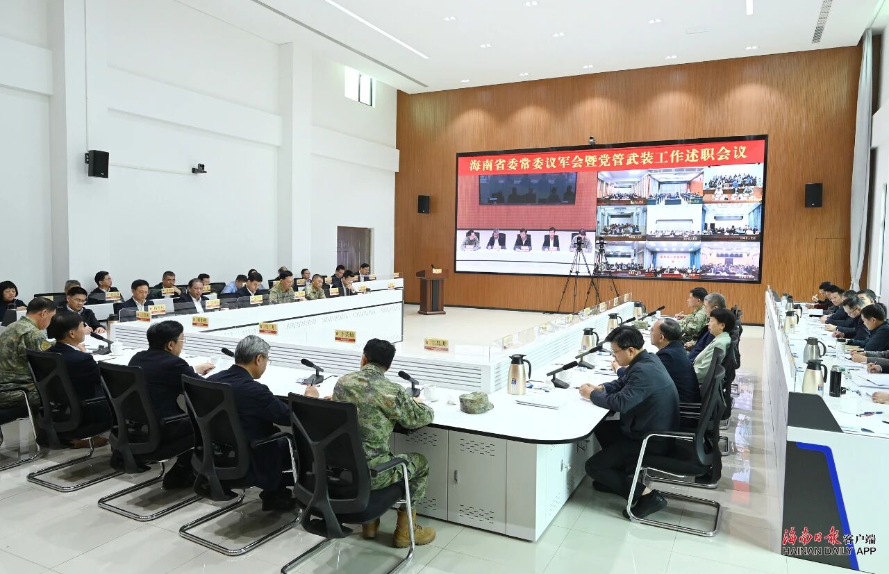 12月12日,2025年度省委常委议军会暨全省党管武装工作述职会议在海口召开,深入学习贯彻党的二十届四中全会精神,深学笃行习近平强军思想,坚决扛起党管武装政治责任,奋力开创国防动员和后备力量建设新局面。
