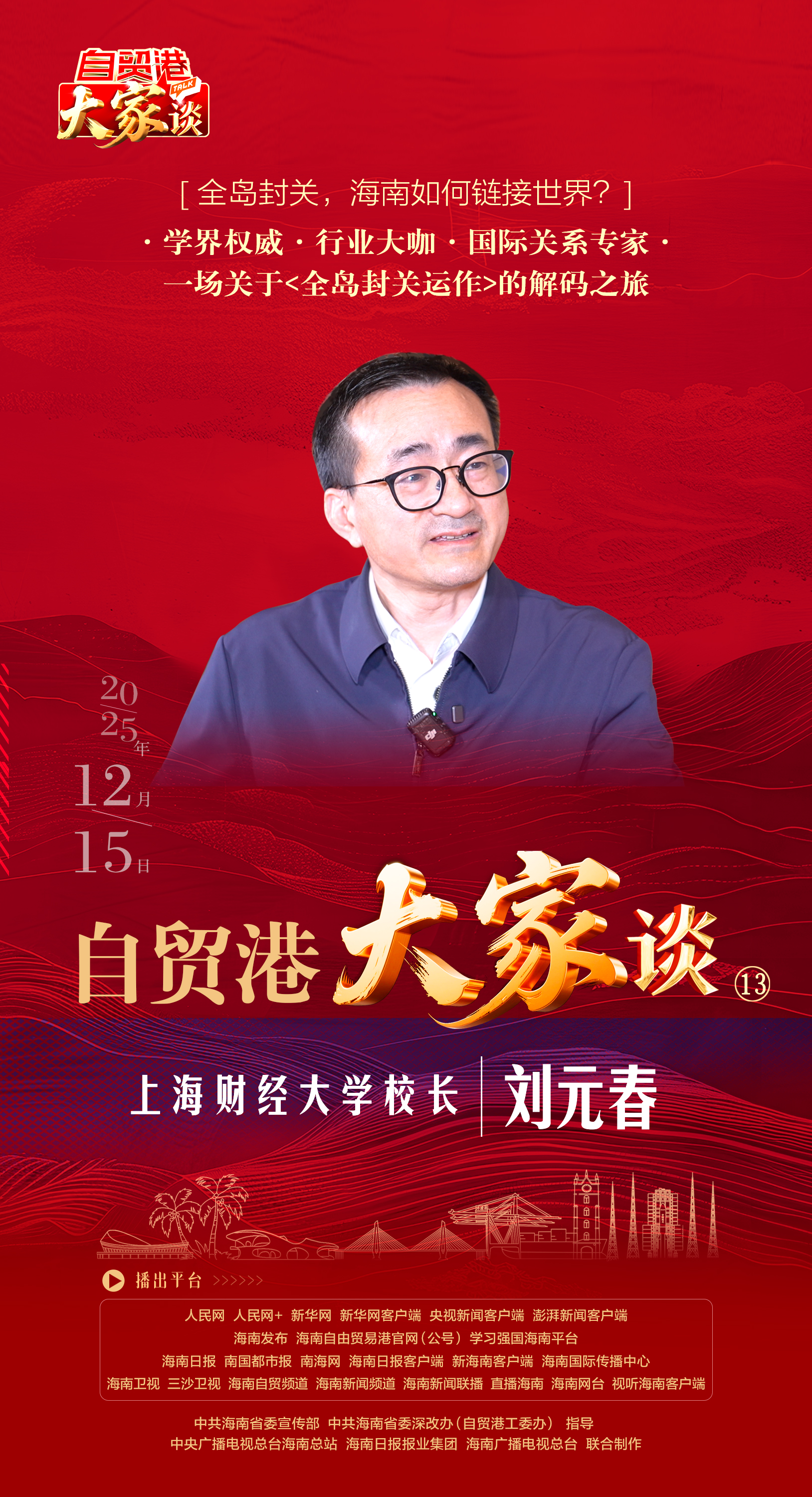 海南自由贸易港全岛封关运作将于2025年12月18日正式启动。全岛封关后,海南如何抓住窗口期,把政策优势转化为产业优势;企业如何最大化利用政策红利,实现降本增效和产业升级……《自贸港“大家”谈》大型访谈节目将于12月15日播出第十三期,对话上海财经大学校长刘元春。