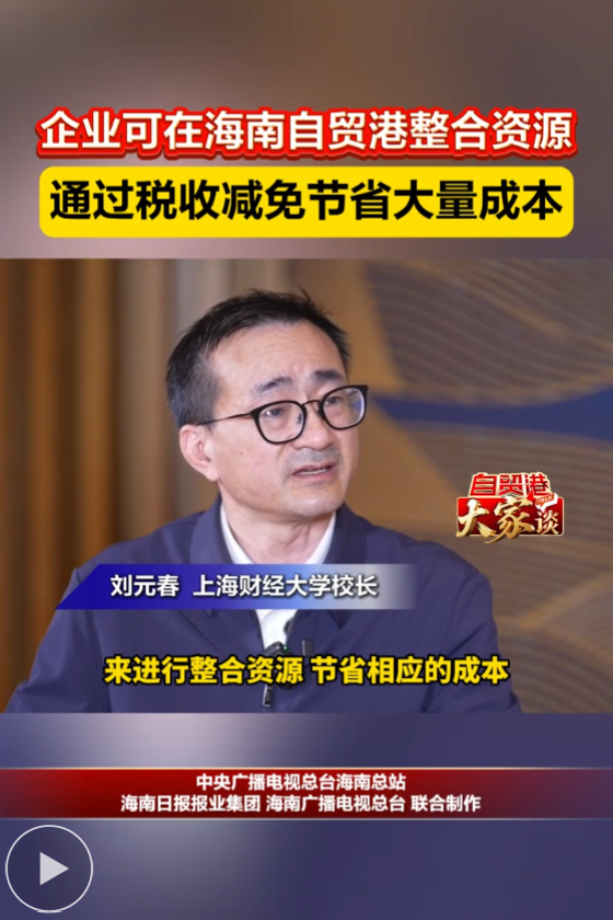 刘元春:大量企业可以在自贸港里面来进行整合资源,节省相应的成本。企业可以利用国内国际一些高端技术、金融资源、人力资源产生一个新的组合,在技术水平、资金使用模式、人才层级上得到全面的提升,当然也会在企业的规模以及治理水平上得到相应的提高,从而涌现出一批具有世界竞争力的企业。