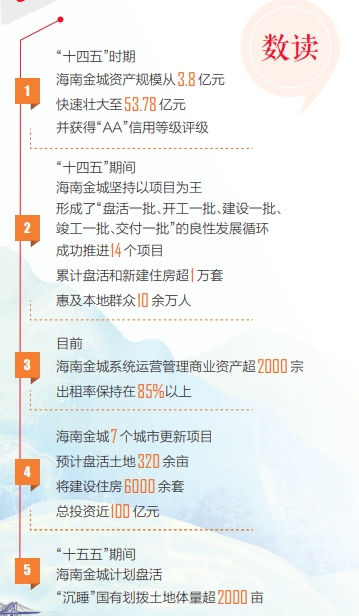 近年来,随着海南自贸港建设深入推进,住房保障成为海南民生工程的关键环节。省国资委聚焦自贸港建设未来发展要素需求,将海南金城调整为省属重点监管一级企业,战略定位为打造海南自贸港保障功能类住房建设的主力军。重组成立不到5年,海南金城发展迅猛,资产规模从3.8亿元快速壮大至53.78亿元,获评“AA”信用等级且长期展望稳定,实现“从无到有、从小到大、从弱到强”的高质量跨越式发展。