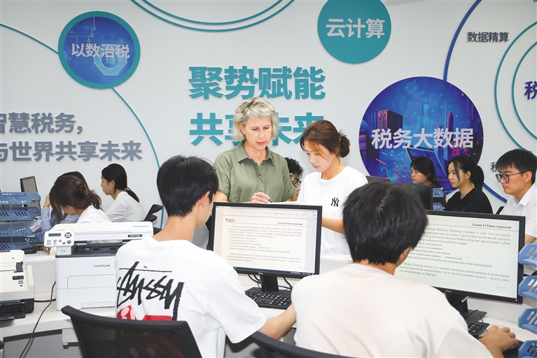 俄罗斯乌拉尔联邦大学教师在为海经贸学生授课。图片由海南经贸职业技术学院提供