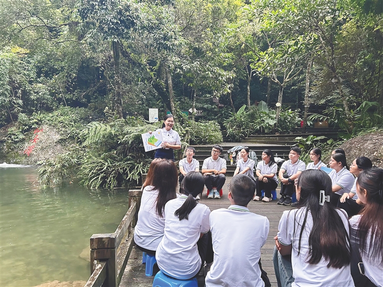 学校思政课教师带领学生在海南热带雨林国家公园内开展实践教学。