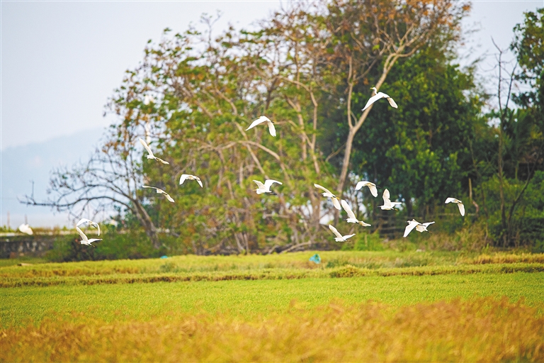 万宁市万城镇周家庄村小海红树林区域,白鹭翩跹。海南日报全媒体记者 袁琛 摄