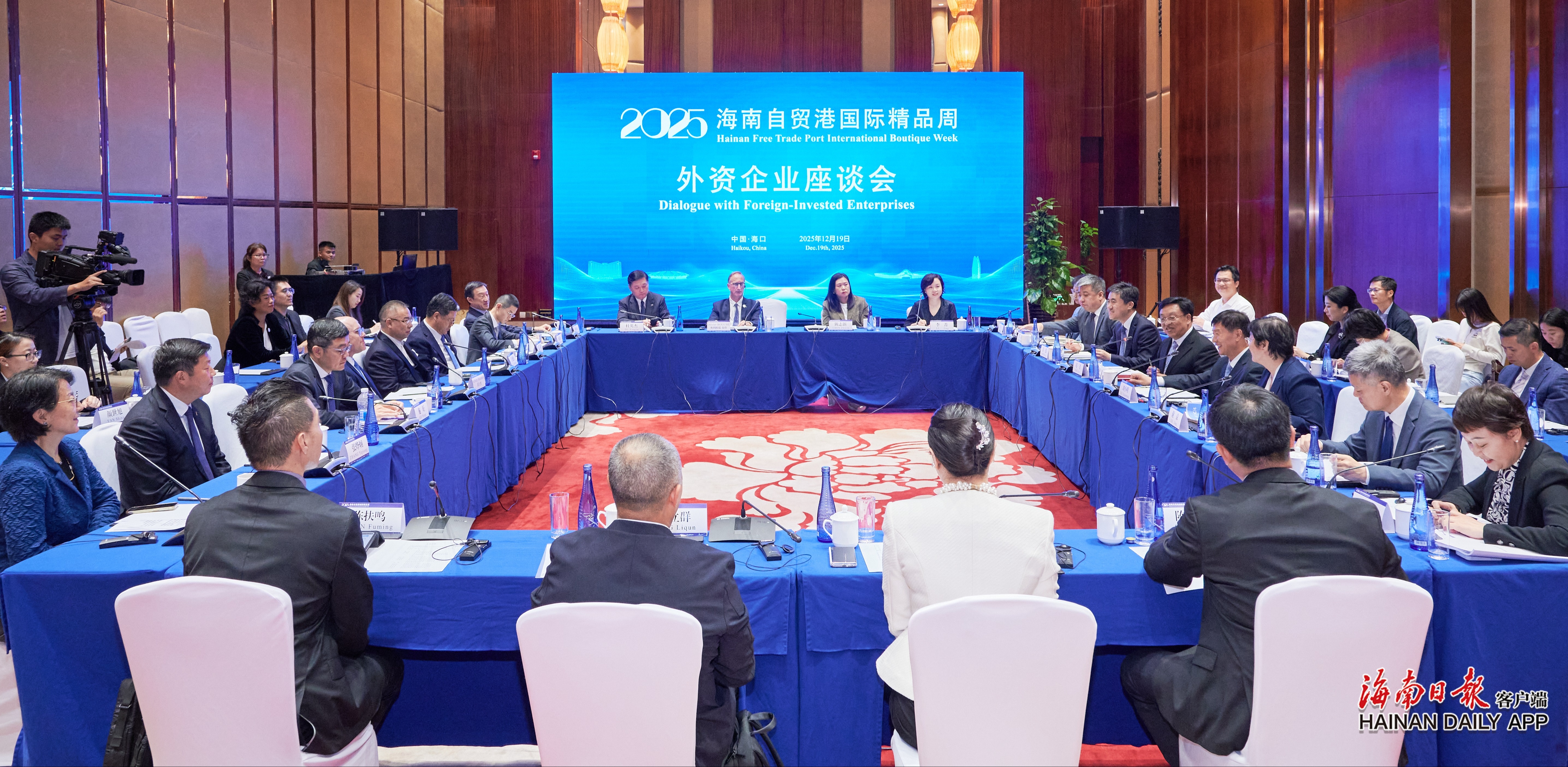12月19日,2025海南自由贸易港国际精品周外资企业座谈会在海口举行,宣介海南自由贸易港开放政策,共话机遇、共谋合作、共促发展。省委书记冯飞出席,省长刘小明主持并介绍海南自由贸易港建设进展。