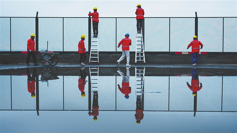 2023年5月8日,在海口港(秀英港区),工人们紧锣密鼓推进海南全岛封关运作的围网建设。该工程是海南全岛8个对外开放口岸和10个“二线口岸”运行的关键基础设施。封关后,海南全岛将建成一个海关监管特殊区域,实施以“‘一线’放开、‘二线’管住、岛内自由”为基本特征的自由化便利化政策制度。
