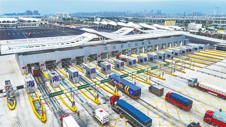 2025年12月18日,出岛货车有序经过海口新海港和南港“二线口岸”(货运)集中查验场。当天,海南自由贸易港正式启动全岛封关,这里承担着海南全岛约80%的货车出岛任务。